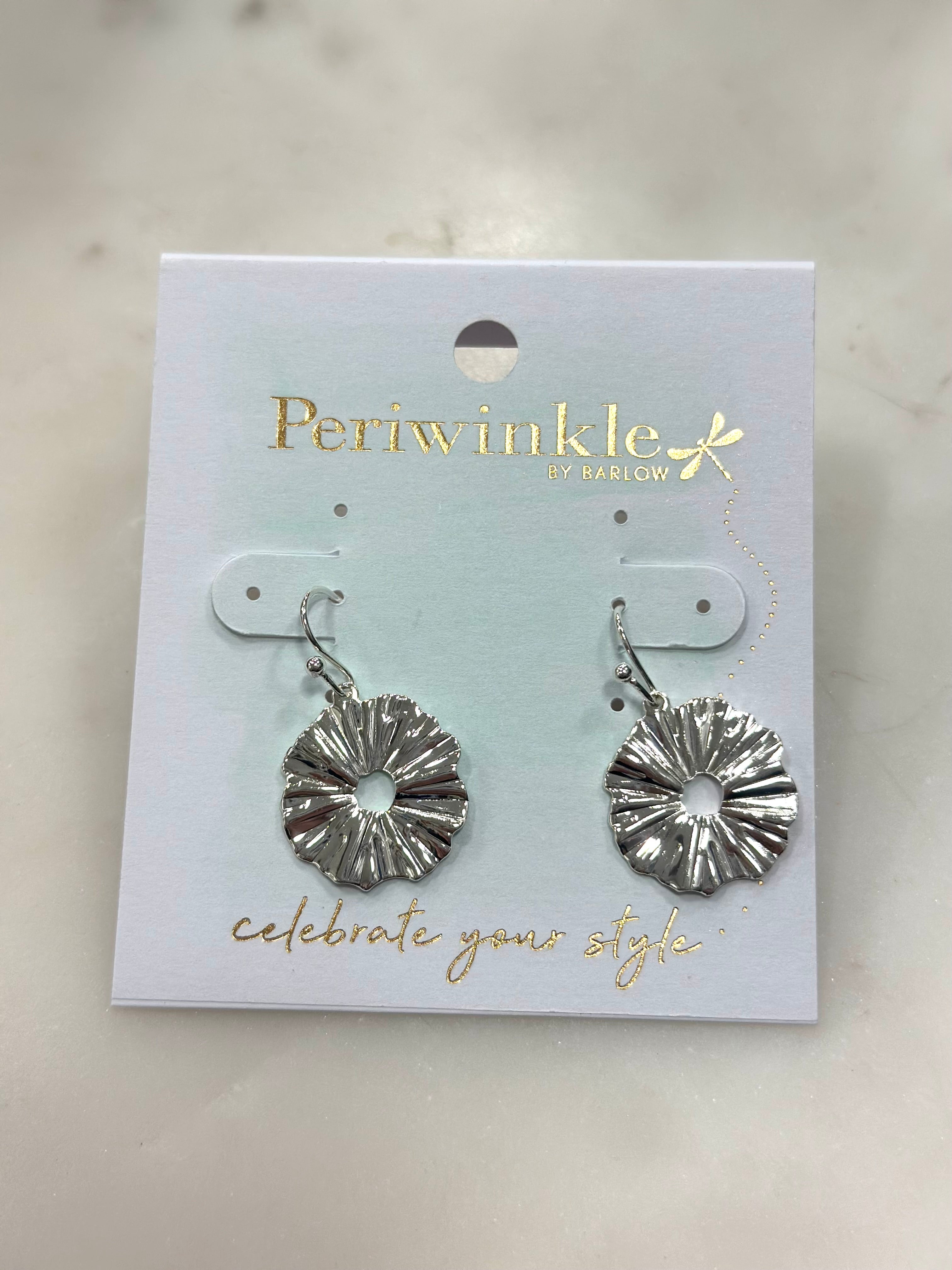 Bold shine meets playful texture with these statement drop earrings. Featuring silver-tone rippled circle silhouettes with a lightly crinkled finish, this pair catches the light beautifully and adds instant personality to any look. Lightweight with easy movement, they’re perfect for everyday wear or adding a fun, modern edge to your outfit.