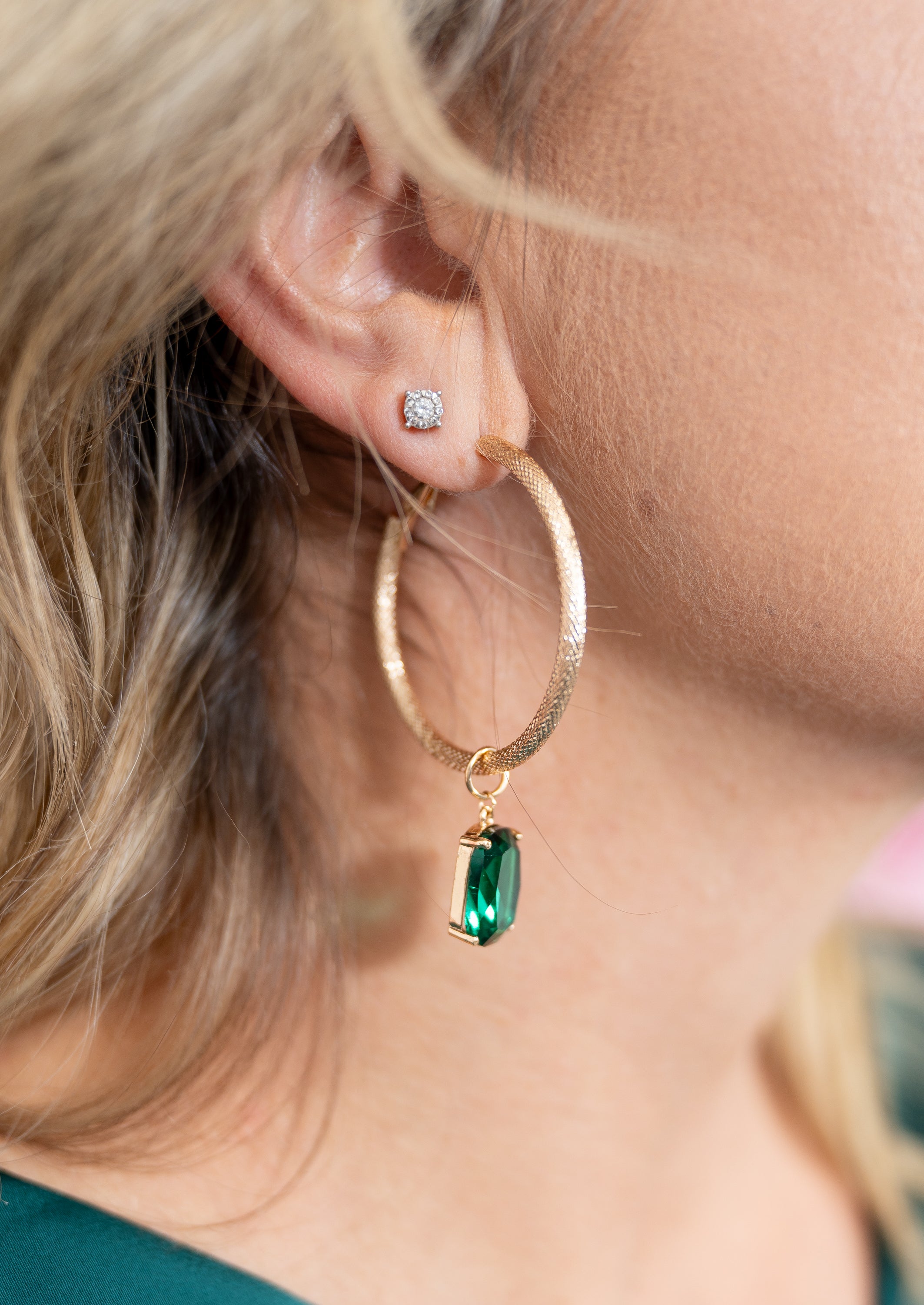 Upgrade your earring game with our Define Glamour Jewel Charm Hoop Earring! These textured hoops feature a stunning jewel dangle, adding an extra touch of glamour. The shiny gold finish makes them a statement piece for any occasion. Elevate your style with confidence and sophistication!