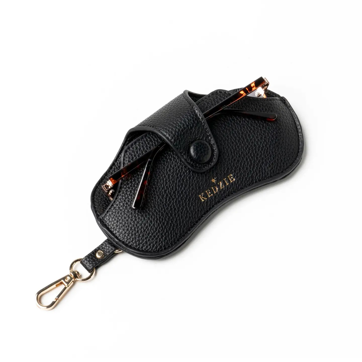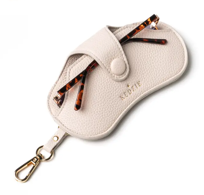 You can clip to the outside or inside of any bag to safely store eyewear on the go. Buttery soft vegan leather protects lenses, Secure snap closure, Universal swivel-snap clip.