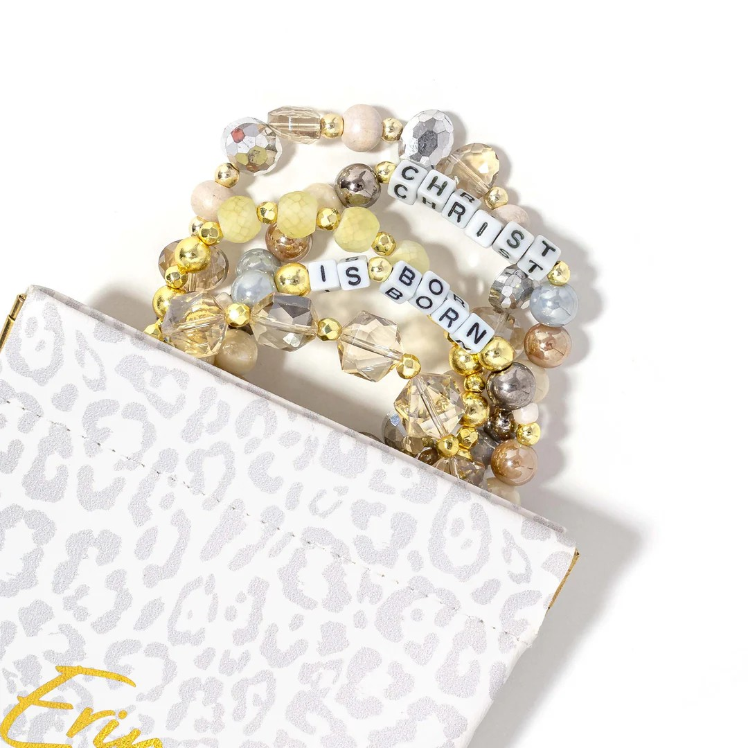 Introducing the Limited Edition Christ is Born Stack, a shimmering and sparkling bracelet collection that beautifully captures the true meaning of the season. This exclusive stack is a must-have for anyone looking to elevate their holiday style with a touch of sophistication and elegance. Let these stunning pieces be a reminder of the reason for the season every time you wear them.