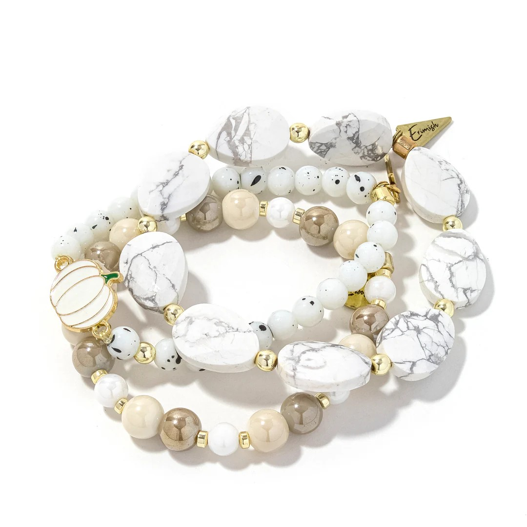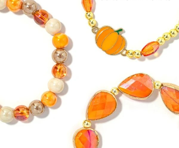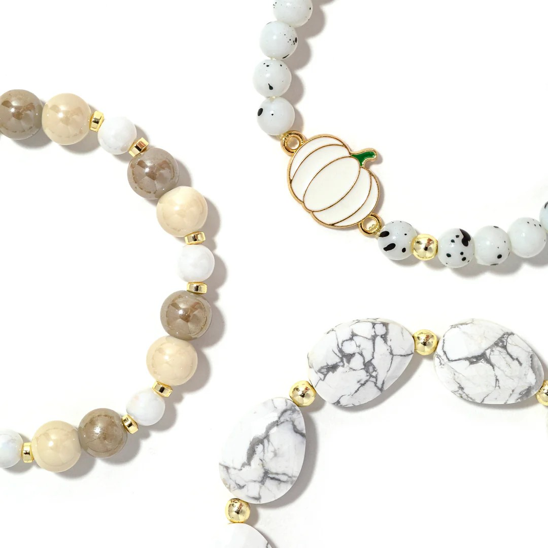 Celebrate the season with the Pumpkin Patch Starter Stack, a playful bracelet set featuring a charming pumpkin centerpiece. Perfect for adding a festive touch to your fall outfits, this stack brings warmth and whimsy to your wrist, making every day feel like a cozy autumn celebration.