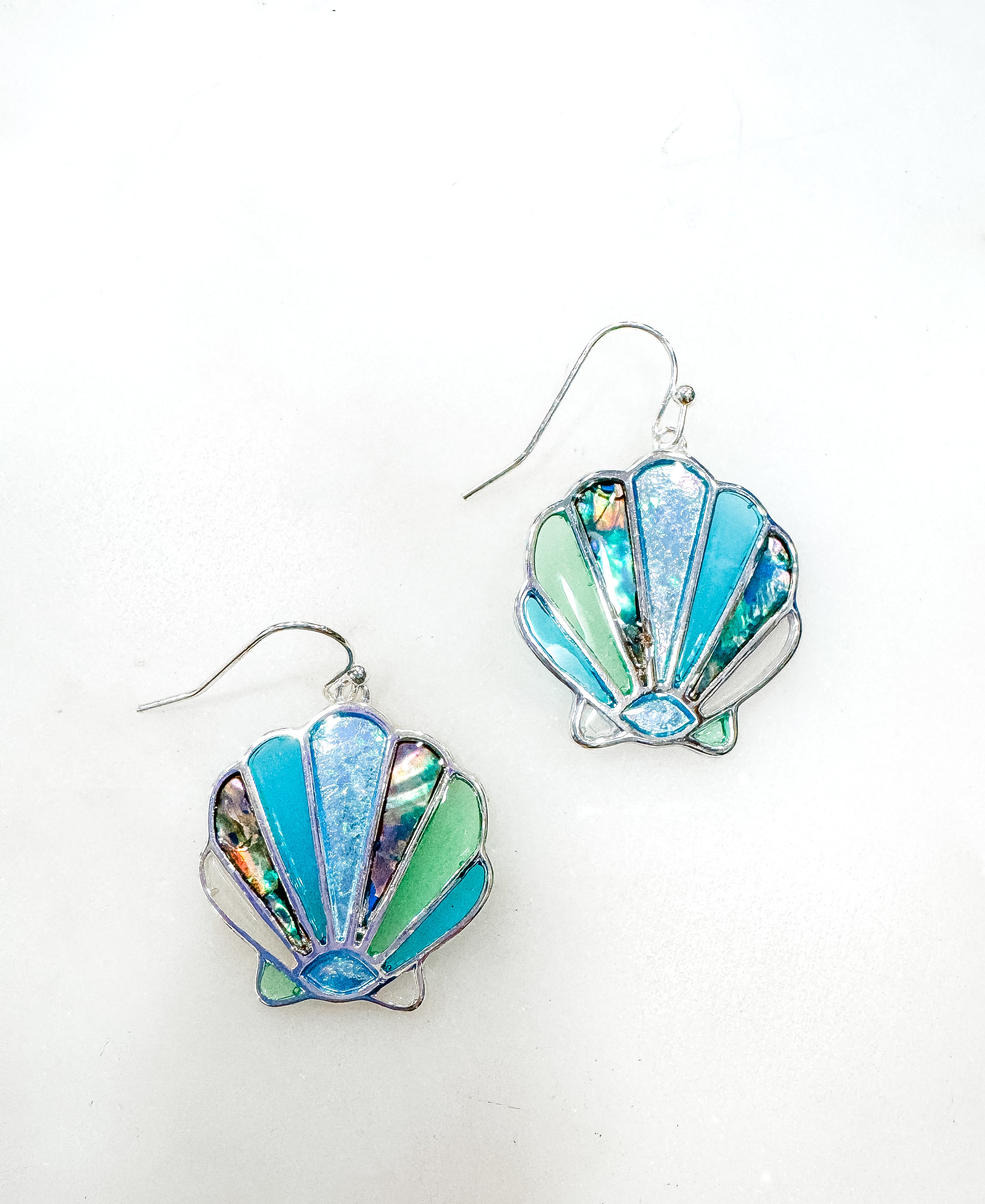 Gorgeous, colorful shell earrings with a unique stained-glass look.