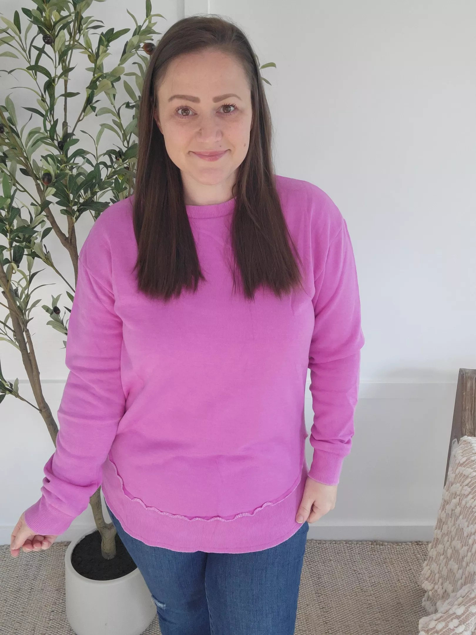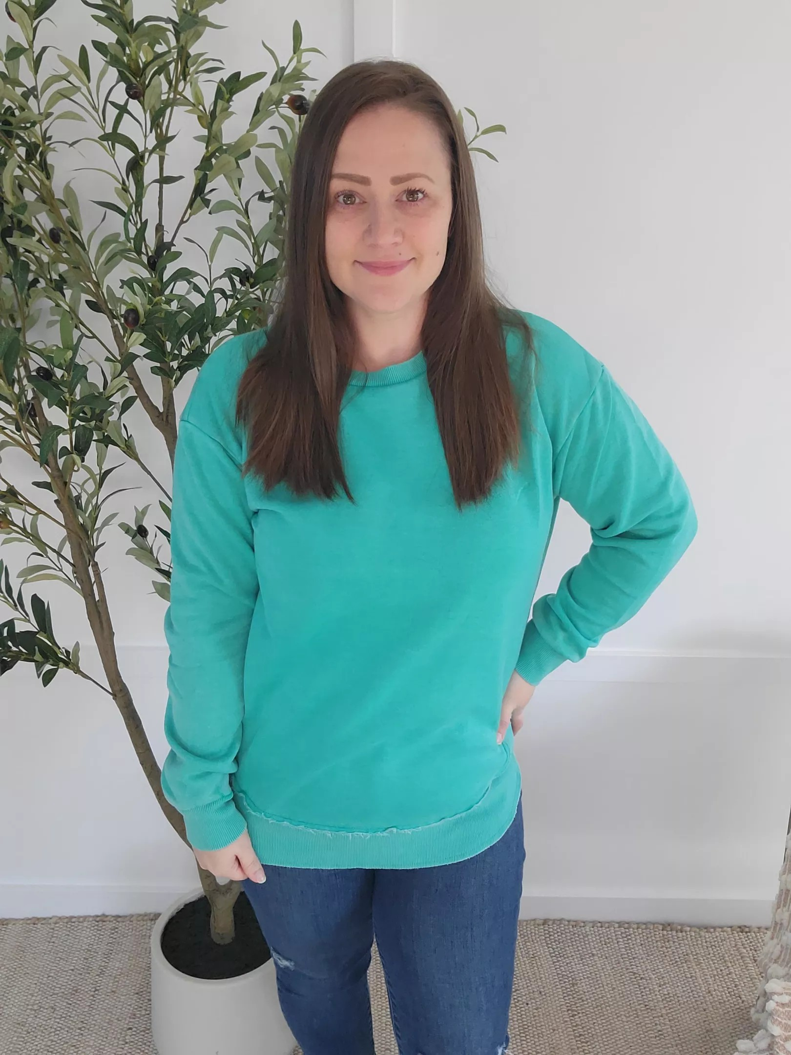 Slip into casual comfort with our Roll The Dice French Terry Pullover Top. Made with a curved bottom hem and stretchy cuffs this pullover is year round perfection. Plus the vintage wash adds a touch of style to any outfit!