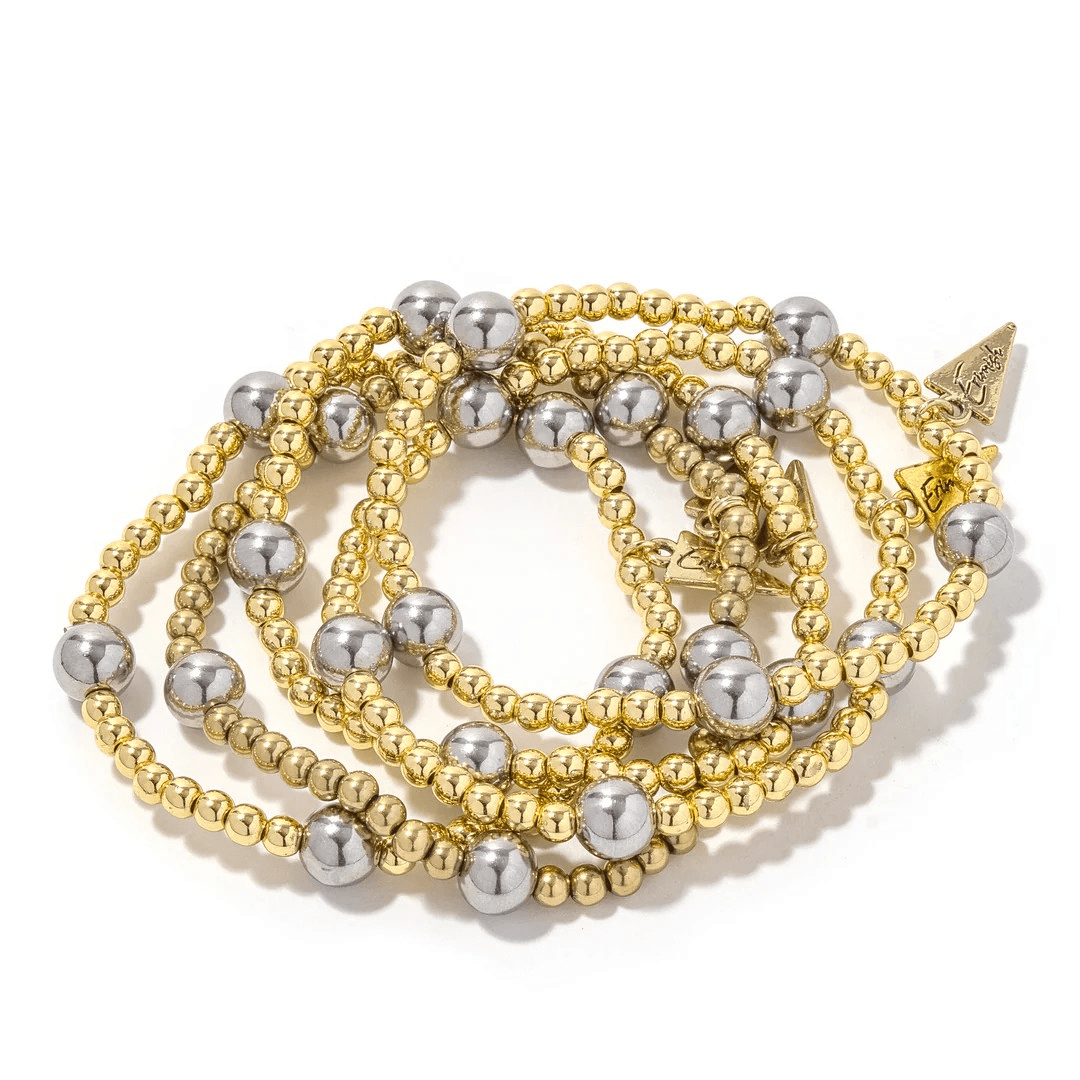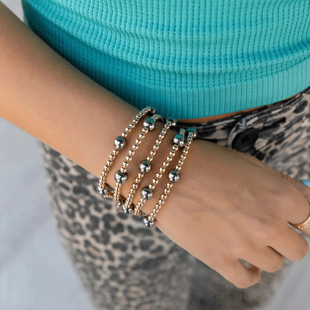 Elevate your accessory collection with the Skyline Pearl Starter Stack, a sophisticated bracelet stack featuring a unique blend of multi-colored pearls. Its distinctive style adds a refined touch to any outfit, making it perfect for those who appreciate elegance with a modern twist.