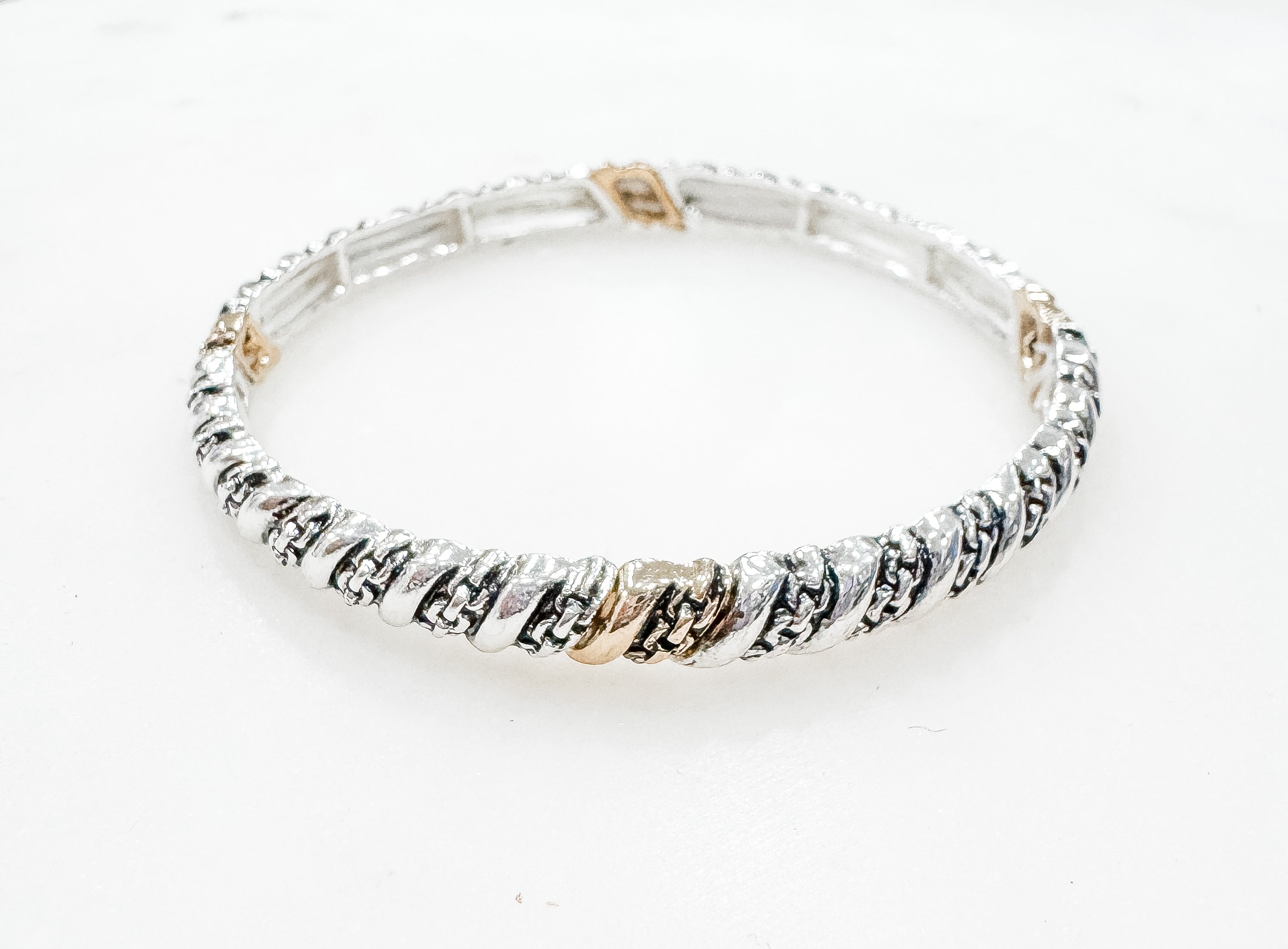 Add a twist of fun to your wrist with the Total Perfection Stretch Bracelet! Featuring a unique chain twist design and mixed finishes, this stretchy bracelet combines style and comfort effortlessly. Perfect for layering or wearing solo, it’s your new go-to accessory for a playful pop!