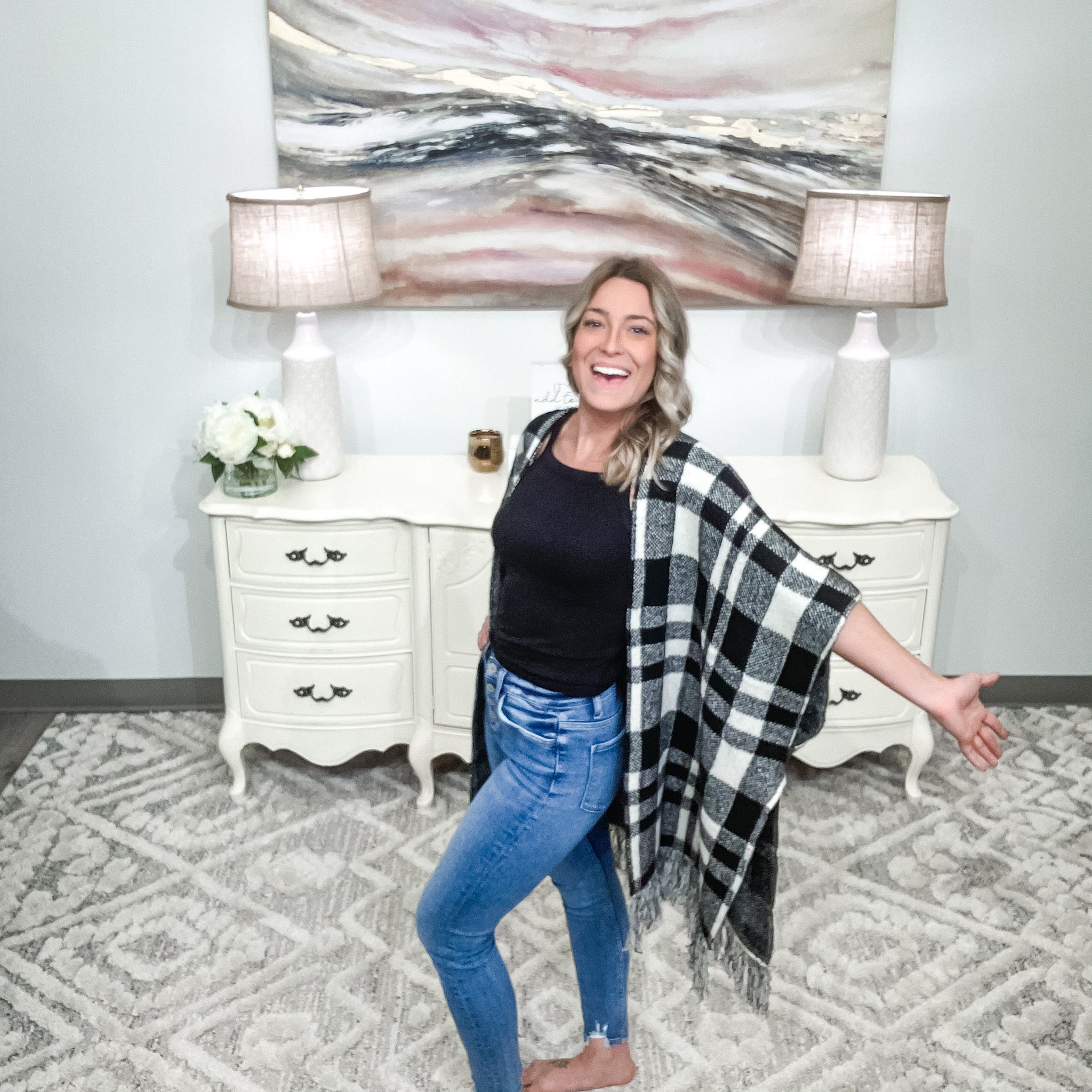 Taylor is wearing a S/M paired with our "Effortlessly Chic Tank" in black.