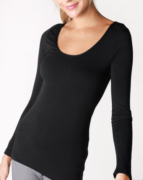 Size: One Size Description: Seamless plain jersey full sleeve scoop neck top Fabric: 92% Nylon / 8% Spandex Made in USA