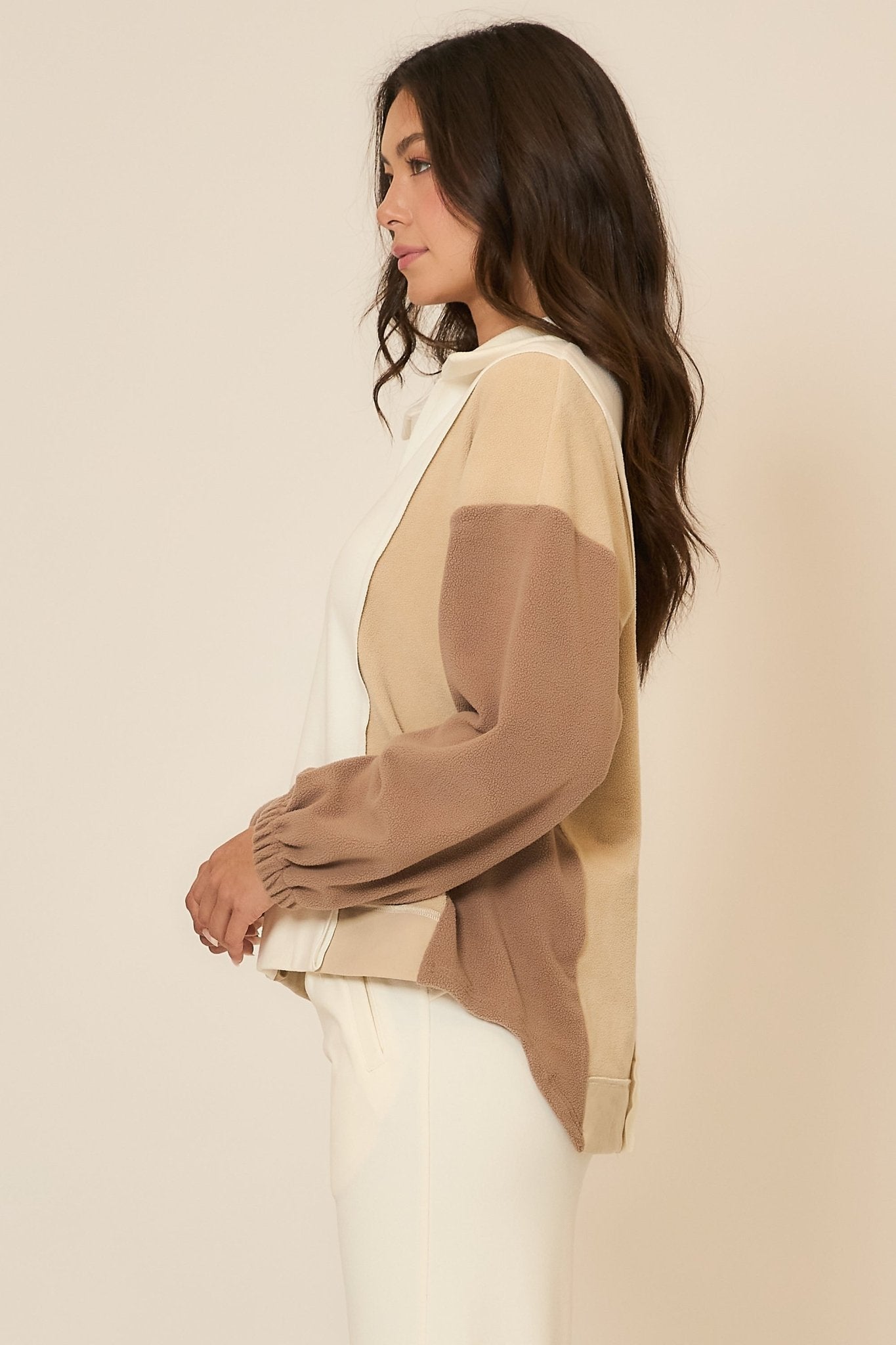 Soft, cozy, and effortlessly chic — the A Waking Moment Sweater is the perfect blend of comfort and elevated casual style. Designed with a modern colorblock pattern in warm neutral tones, this sweater delivers an easy, lived-in look that feels both relaxed and polished.