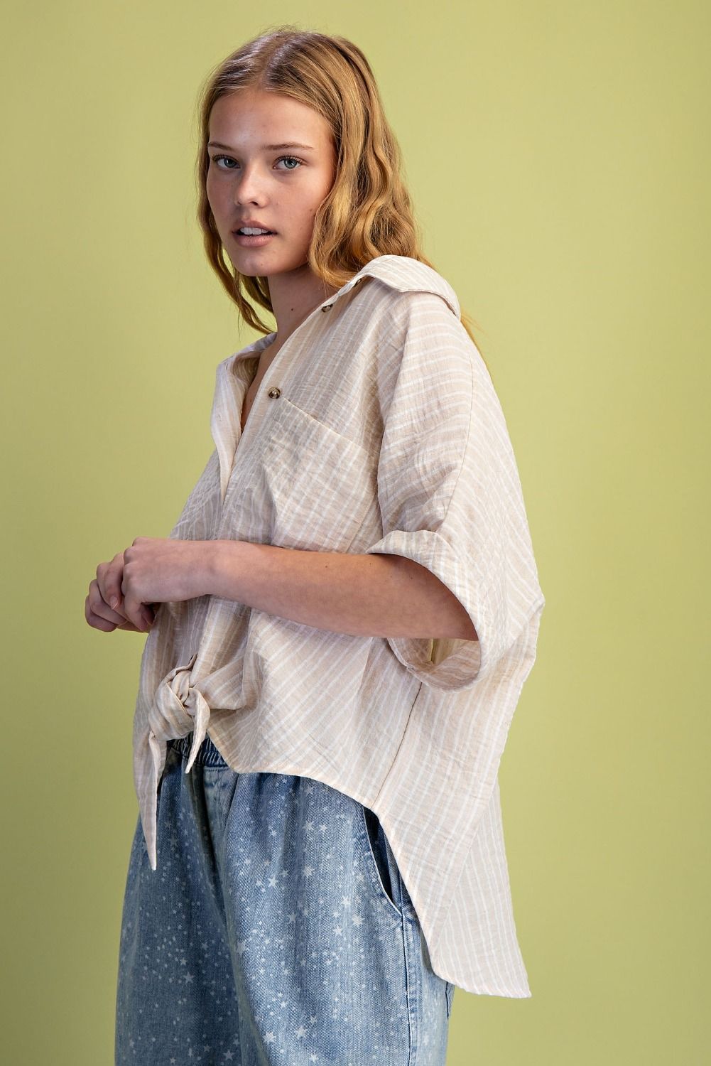 -BUTTON DOWN STRIPED TOP