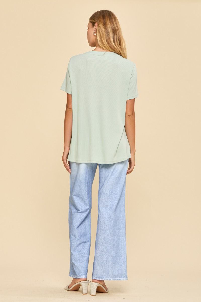 A boyfriend style top crafted from baby ribbed fabric, offering a relaxed and oversized fit. It's casual, laid back design makes it perfect for everyday wear, providing both comfort and style. Stretchy and knit fabric.