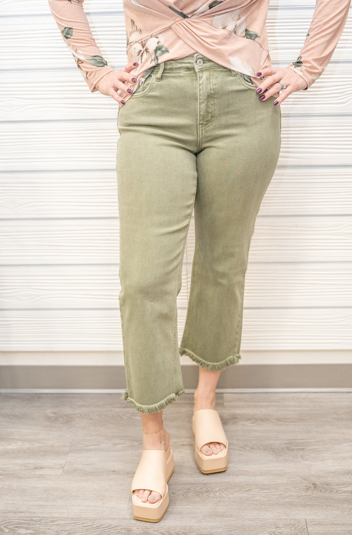 Take a guess on how often you are going to get to wear these jeans? If you guessed a lot, you'd be right! These jeans are soo cute with their cropped, raw hems and that fab olive color! You are going to love styling these jeans with flowy blouses, cozy sweaters, or even with basic tops. We promise!