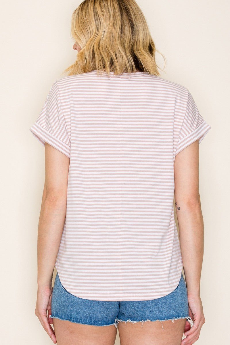 ROUND NECK, EXTENDED SHORT SLEEVE, PINSTRIPED JERSEY TOP