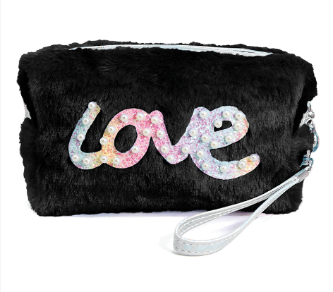 Soft Faux Fur Love Letter Pouch fun way to store all kids of personal or even school supplies. Perfect for packing in a suitcase, throwing in your beach bag or in your backpack!