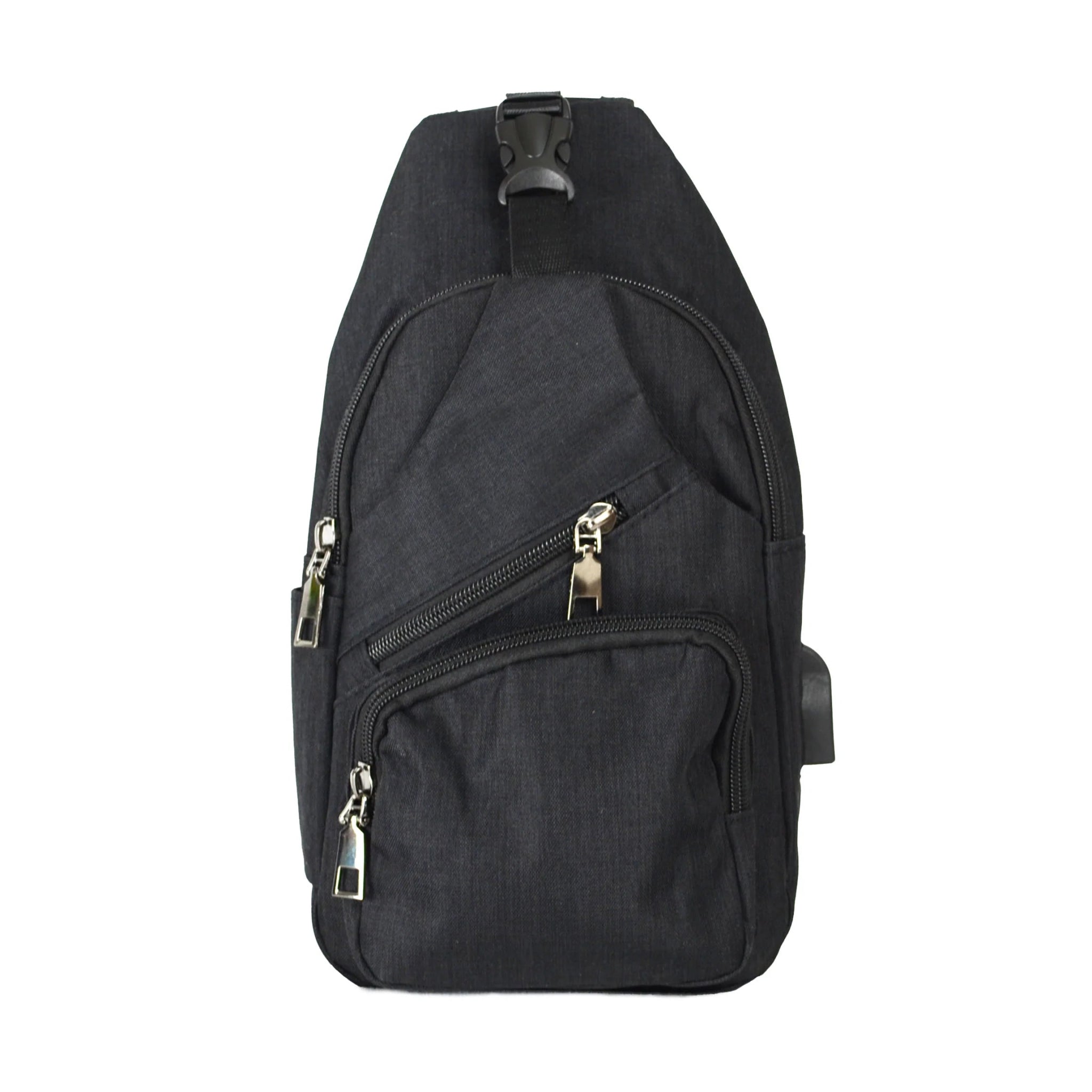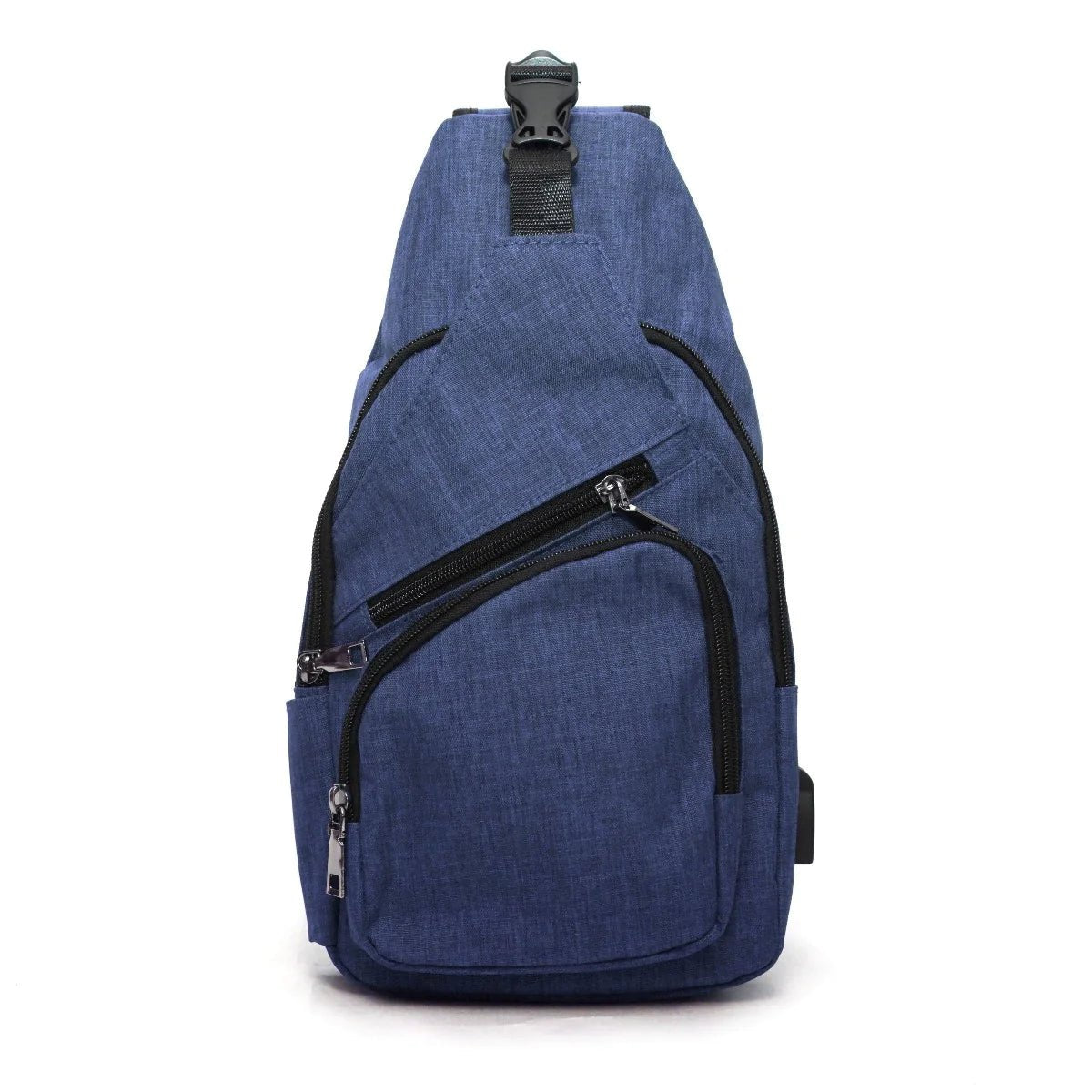The zipper on the main compartment can be clipped closed, preventing someone from easily unzipping your bag and stealing your things. There's a USB port outside of the pack so you can charge your phone while using it. Place a portable power bank (not included) inside of the pack and connect it to the cable in the bag. Now you can plug your phone to the external port and charge without opening your bag.