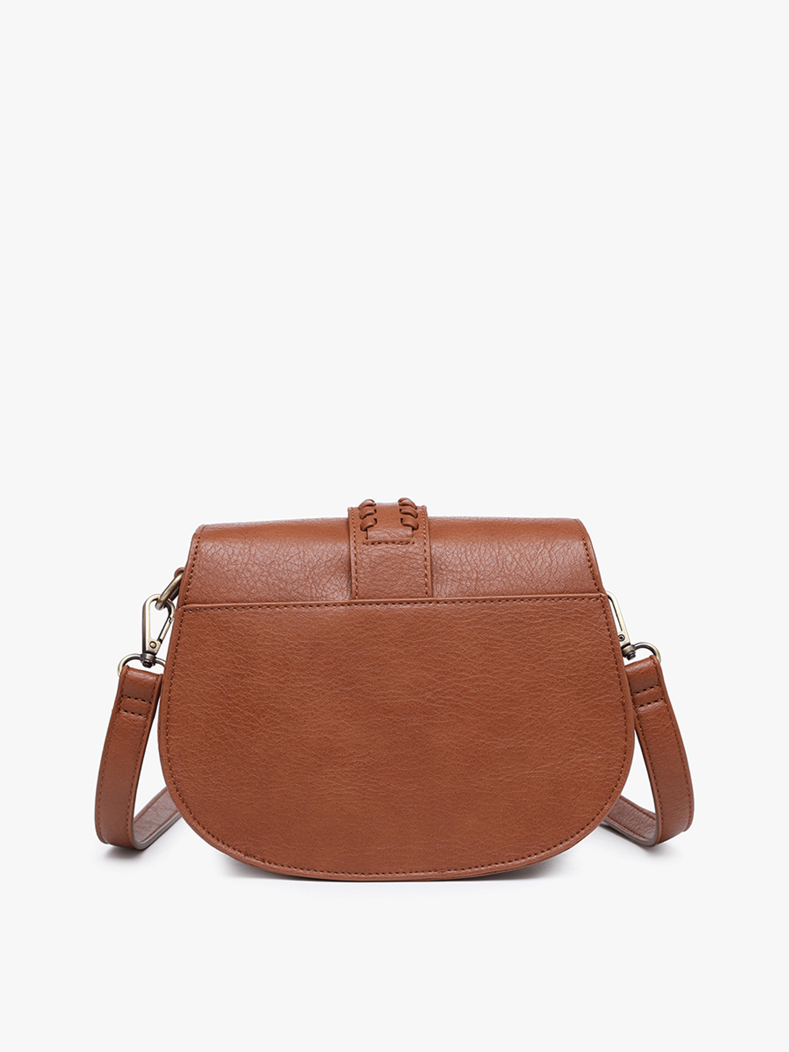 The Georgie Front Detail Crossbody combines style and functionality in a versatile saddlebag design. Featuring intricate braided detailing, this crossbody showcases a sophisticated aesthetic. The vegan leather-wrapped buckle adds a touch of elegance to the front flap closure, secured with both snap and zipper closures for added security.