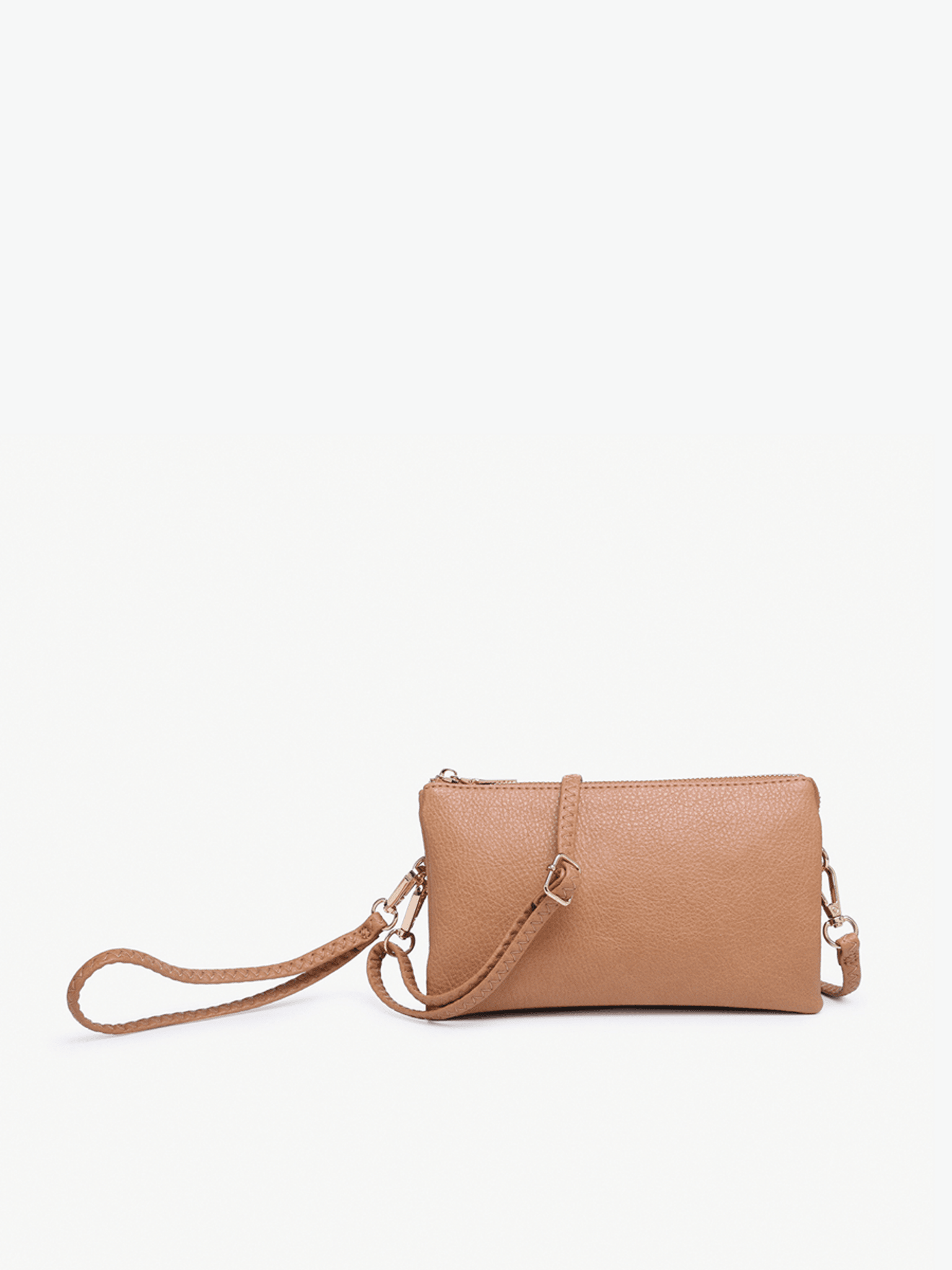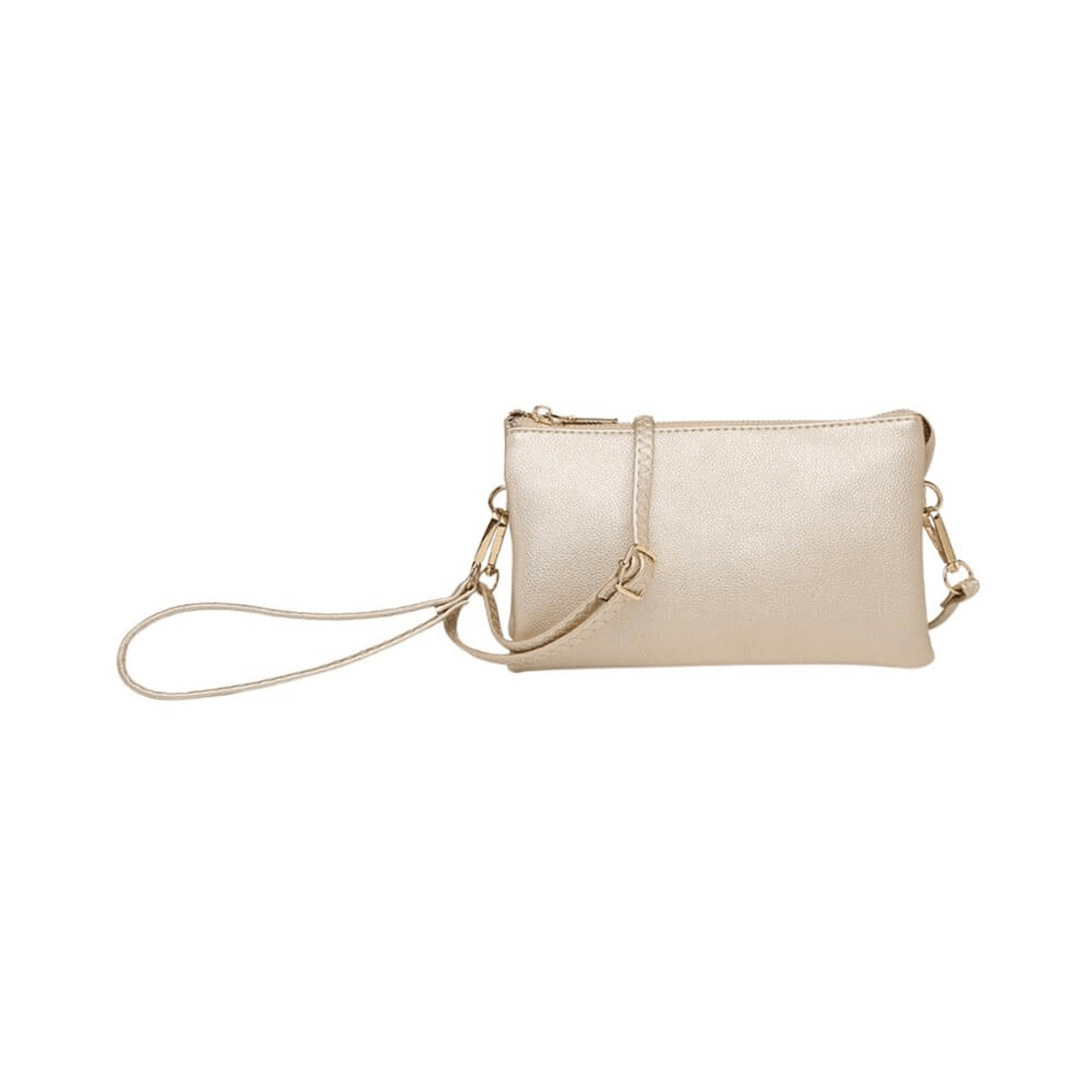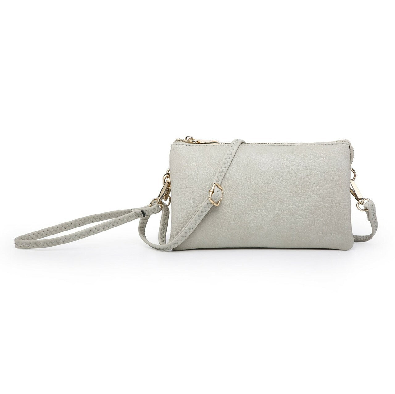 - Versatile crossbody/clutch with two major compartments and a middle zipper pocket for organization.