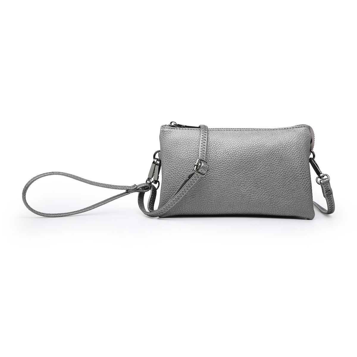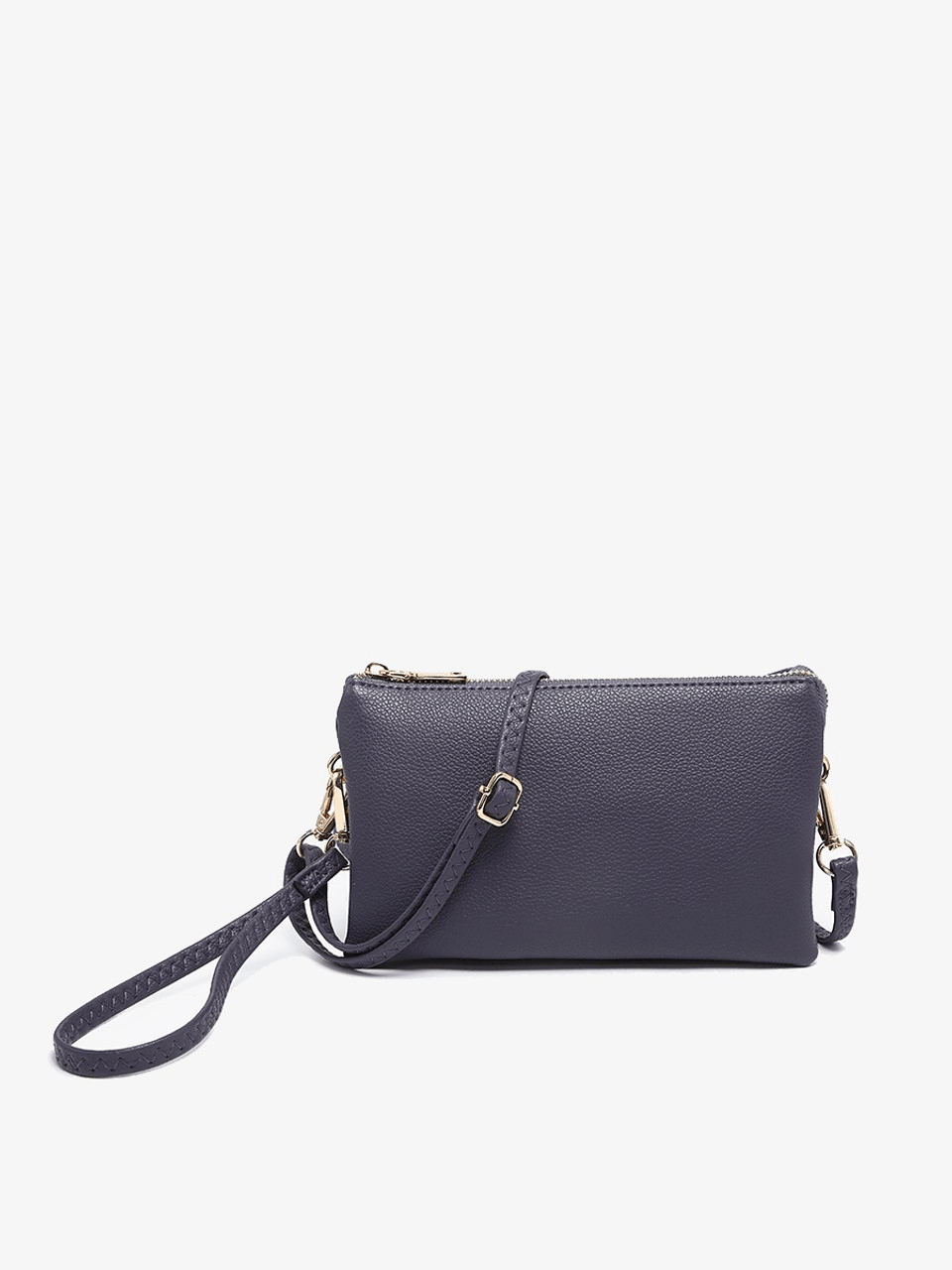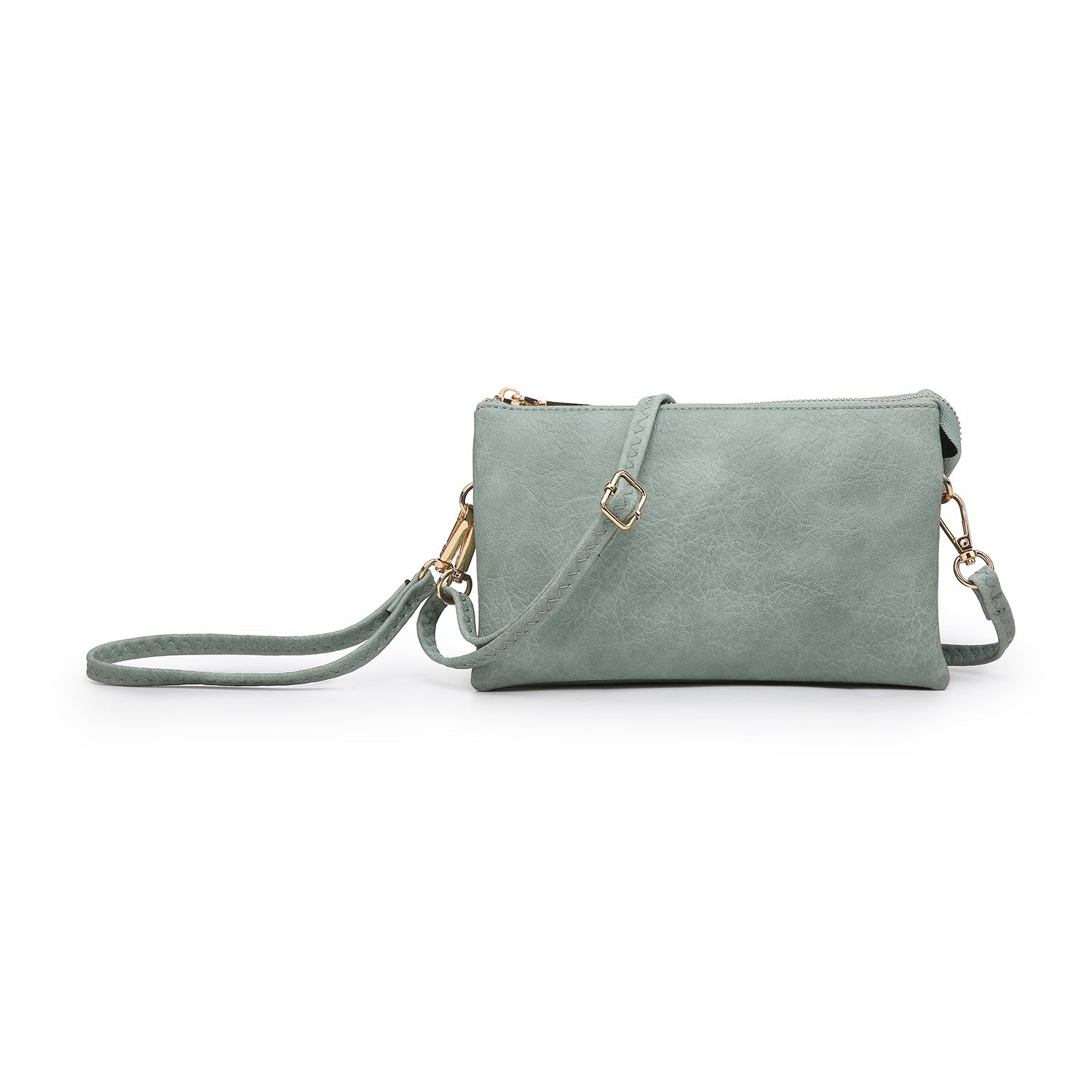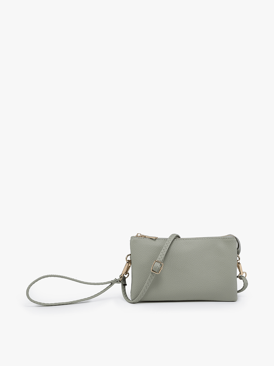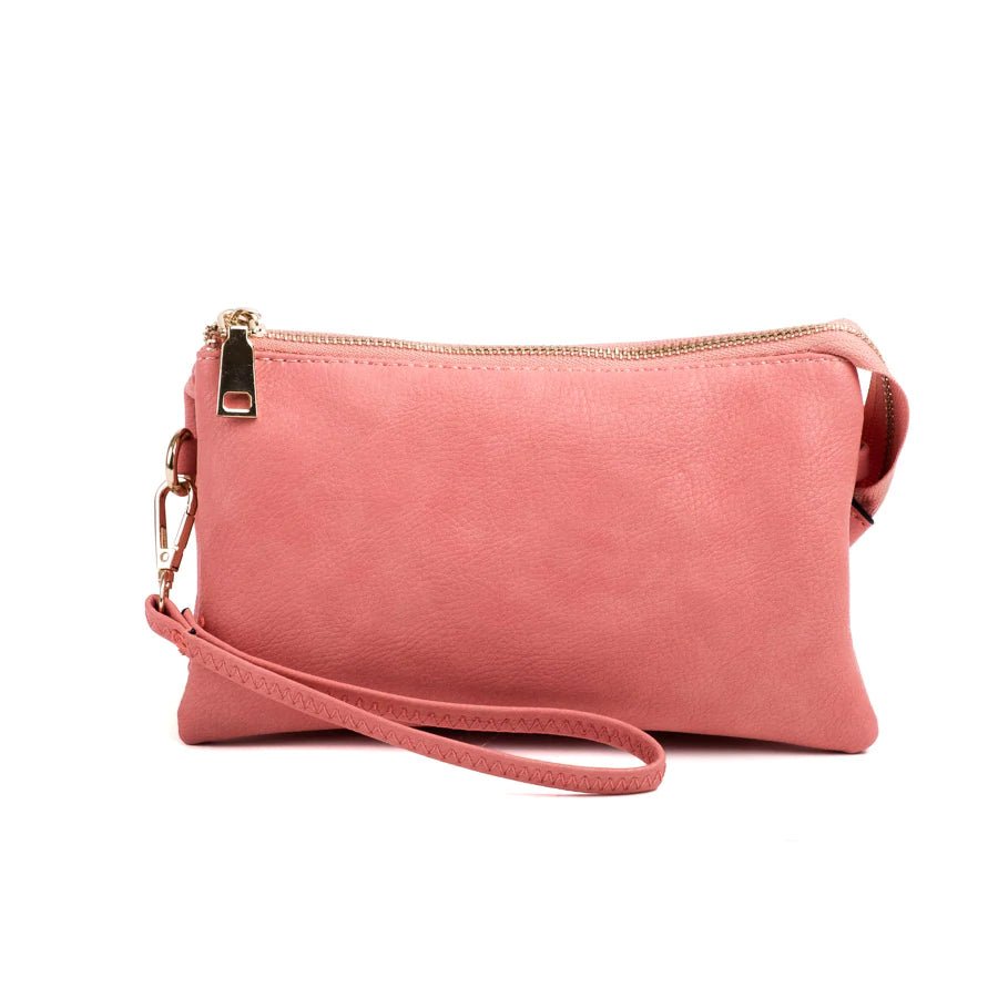 Discover the Riley Crossbody, a beloved favorite and a top seller in our eco-friendly handbag collection. This versatile vegan leather crossbody/clutch is designed for both functionality and style. It features two major compartments, a secure middle zipper pocket, and a top zipper closure to keep your essentials organized. Inside, find two slip pockets and six cardholders, providing ample space for all your belongings. Whether worn as a crossbody for hands-free convenience or carried as a clutch for a sleek look, the Riley adapts to your style needs. Crafted from premium vegan leather, it offers both luxury and durability. The bag comes with a detachable wristlet strap and an adjustable shoulder strap, allowing for versatile carrying options. Dimensions: 9"L x 1.5"D x 5"H — the perfect balance between practicality and elegance. Elevate your accessory game with the Riley Bag, your go-to choice for any occasion.