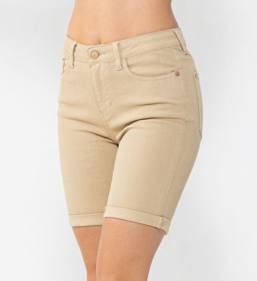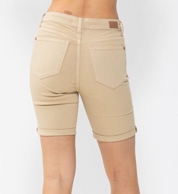 MIDRISE GARMENT DYED CUFFED BERMUDA SHORTS
