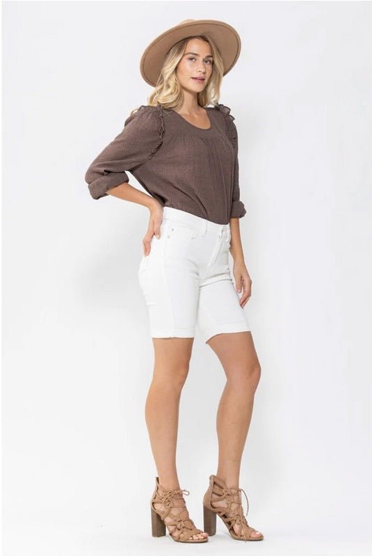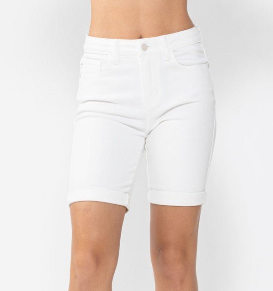 WHITE MID RISE DOUBLE CUFF BERMUDA SHORTS