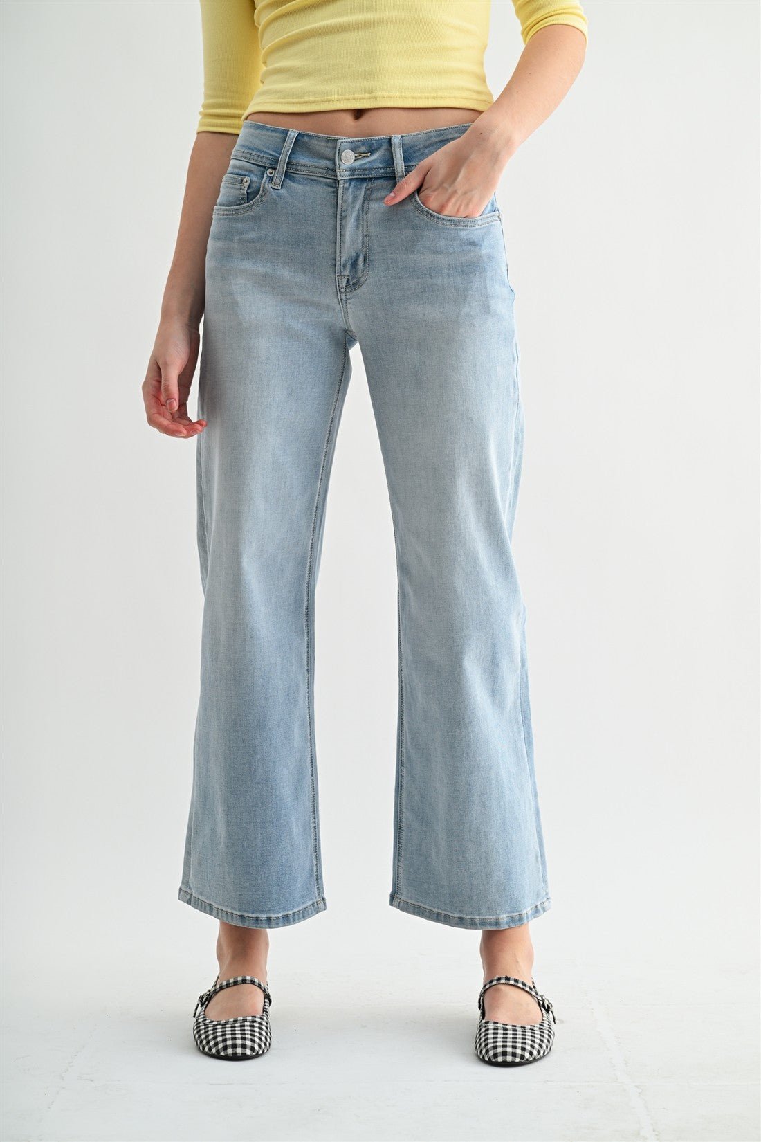 Meet your new everyday denim obsession. The MICA MR Oh-So-Dreamy Wide Leg Ankle Jeans blend timeless style with effortless comfort. Crafted in a soft, light-wash denim, they offer that classic, clean look you can pair with anything. The mid-rise fit and wide-leg silhouette create a flattering, easygoing shape that moves with you, while the ankle length adds a modern touch.