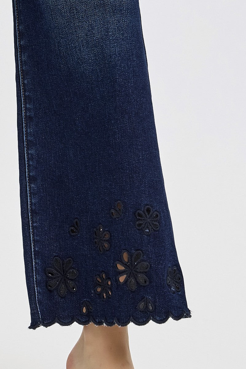 HIGH RISE CROP WIDE CUT OUT SCALLOP DETAIL JEANS