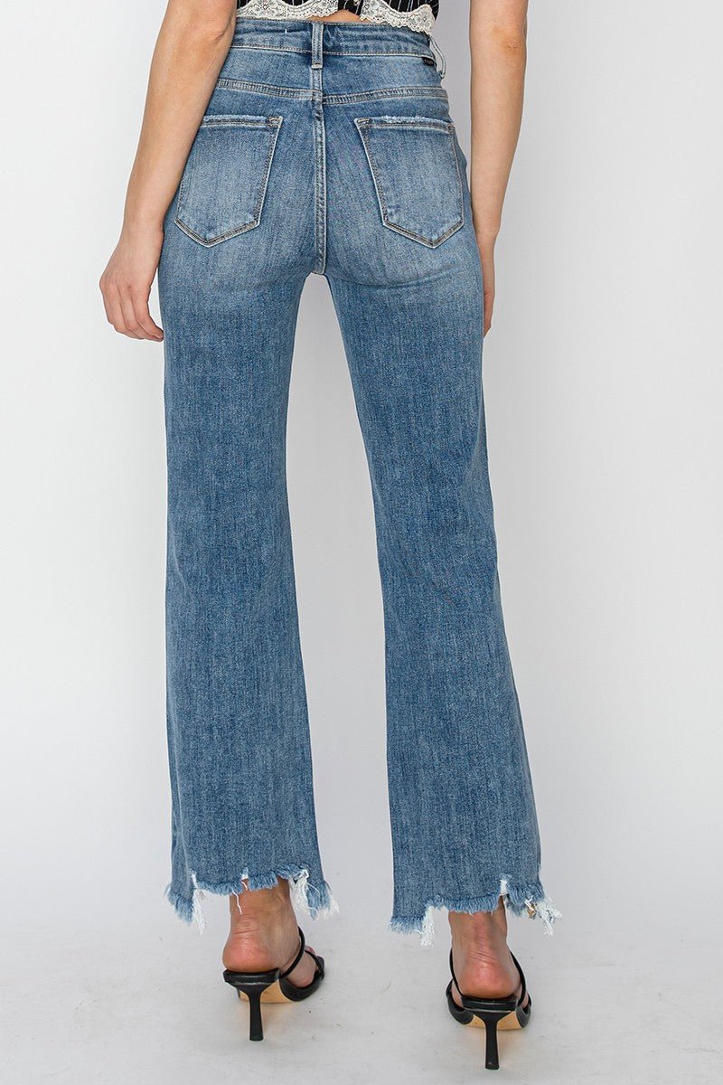Step into style with Risen HR Upgraded Denim Crop Jeans! These jeans feature a slim fit to accentuate your shape, while also offering a wide leg for a unique and trendy look. With their medium blue color, they are perfect for any occasion. Upgrade your denim collection today!