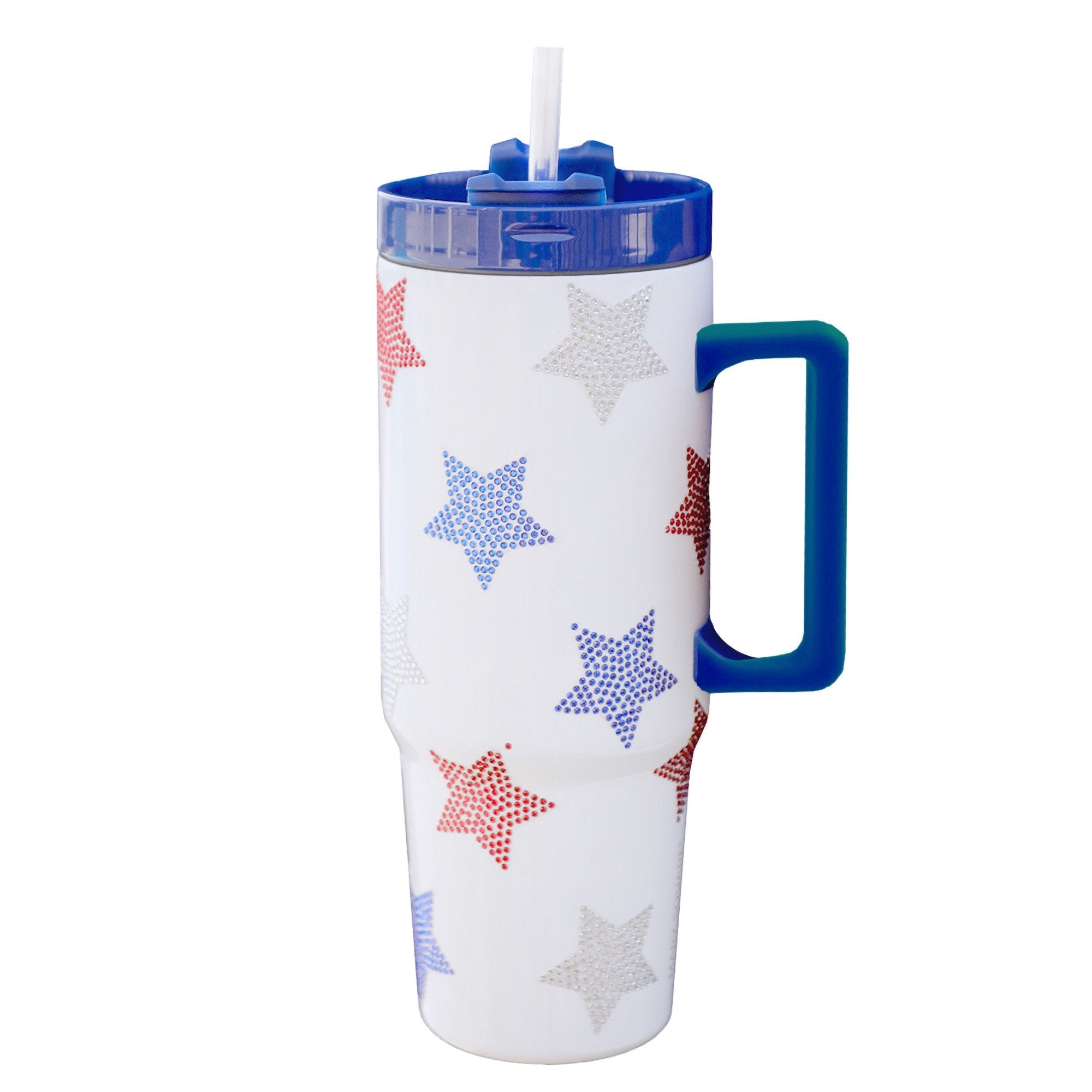 - Stay hydrated with this stylish travel tumbler; Features a vibrant "Americana" pattern of red, blue, and white star pattern.