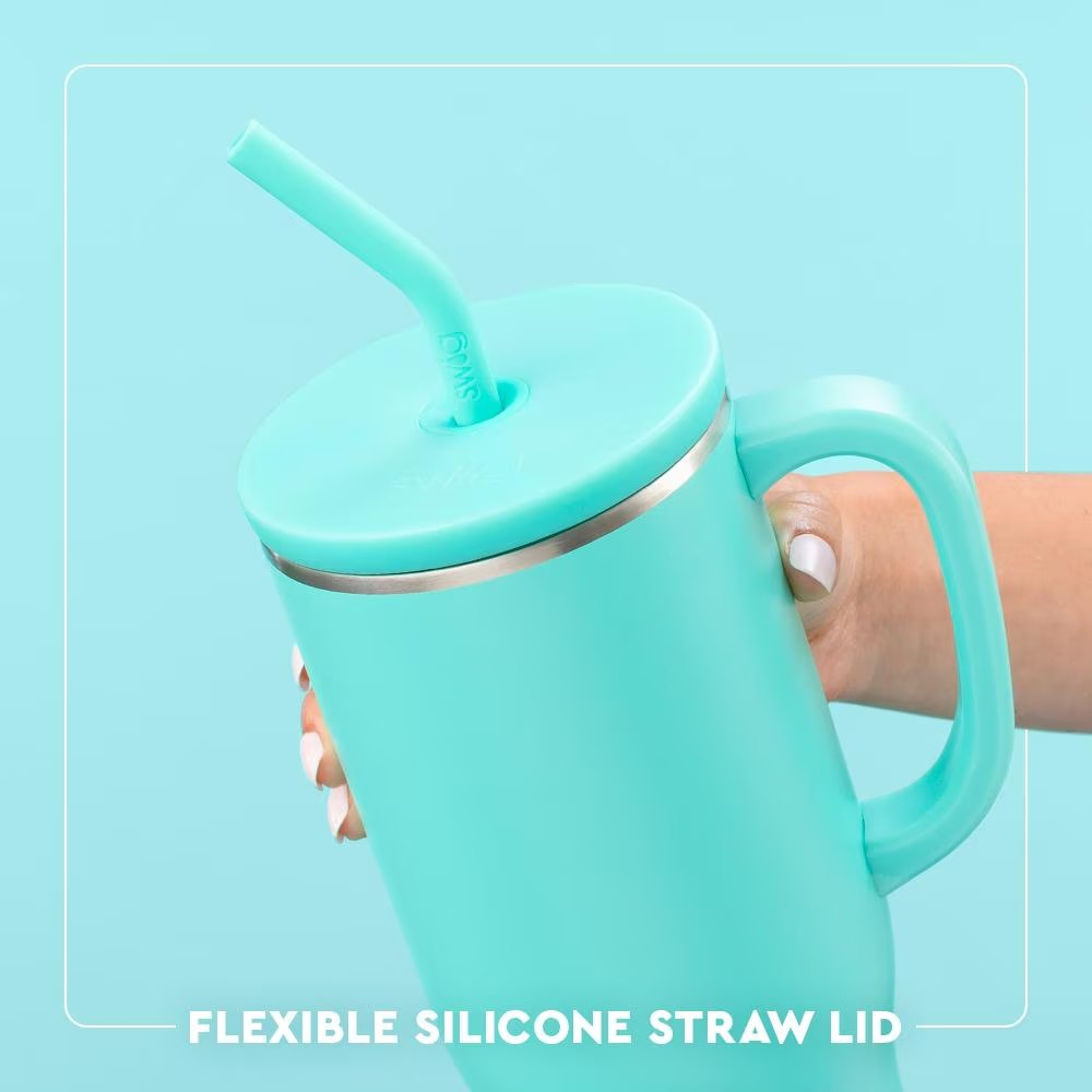 Insulated Mega Mug: Hydrating has never been easier with our 40oz Insulated Mega Mug! A cup holder-friendly frame, a comfort-grip handle, and a plastic straw with a silicone flexi-tip all come together to create your new favorite Swig.