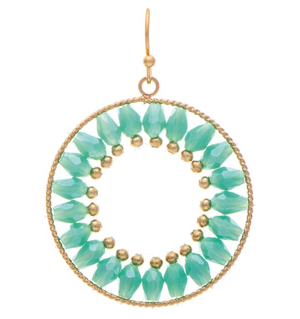 Bursting with color and fun, the Carnival Sparkle Hoop Earrings feature a dazzling circle design framed in gold and adorned with vibrant faceted beads. Light-catching and playful, these earrings bring instant joy and a pop of personality to any look.