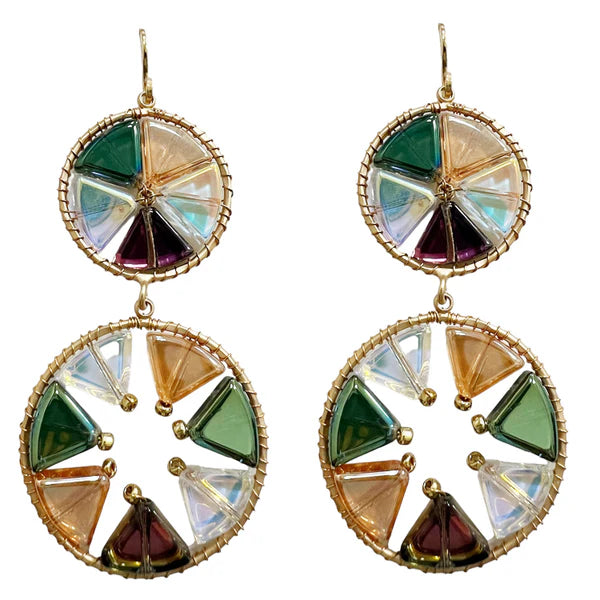 Introducing our elegant Moody Mystic Double Circle Dangle Earring, perfect for any occasion. Featuring stunning crystal accents and a luxurious gold finish, these earrings will add pizzaz to any outfit. With its gorgeous crystals and long dangle design, everyone is going to ask where you got them!