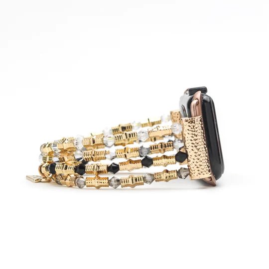 Emersyn - This watch band is made up of beautiful combination of gold beads with clear, grey & black accents!