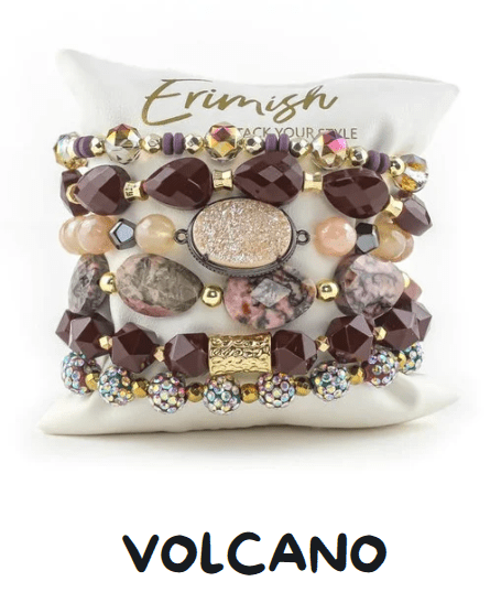 VOLCANO - Experience stand-out style with our Volcano Bracelet Stack. Featuring deep maroon hues, the perfect amount of sparkle, and unique shaped beads, this stack adds an effortless touch of glamour to any outfit. Be bold and stand out.