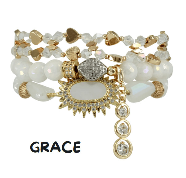 GRACE - A sprinkle of white and gold gives this three-piece stack a classic shine - so effortless and chic. Perfect for creating a fully stacked look. You'll be reaching for this classic must-have over and over again.