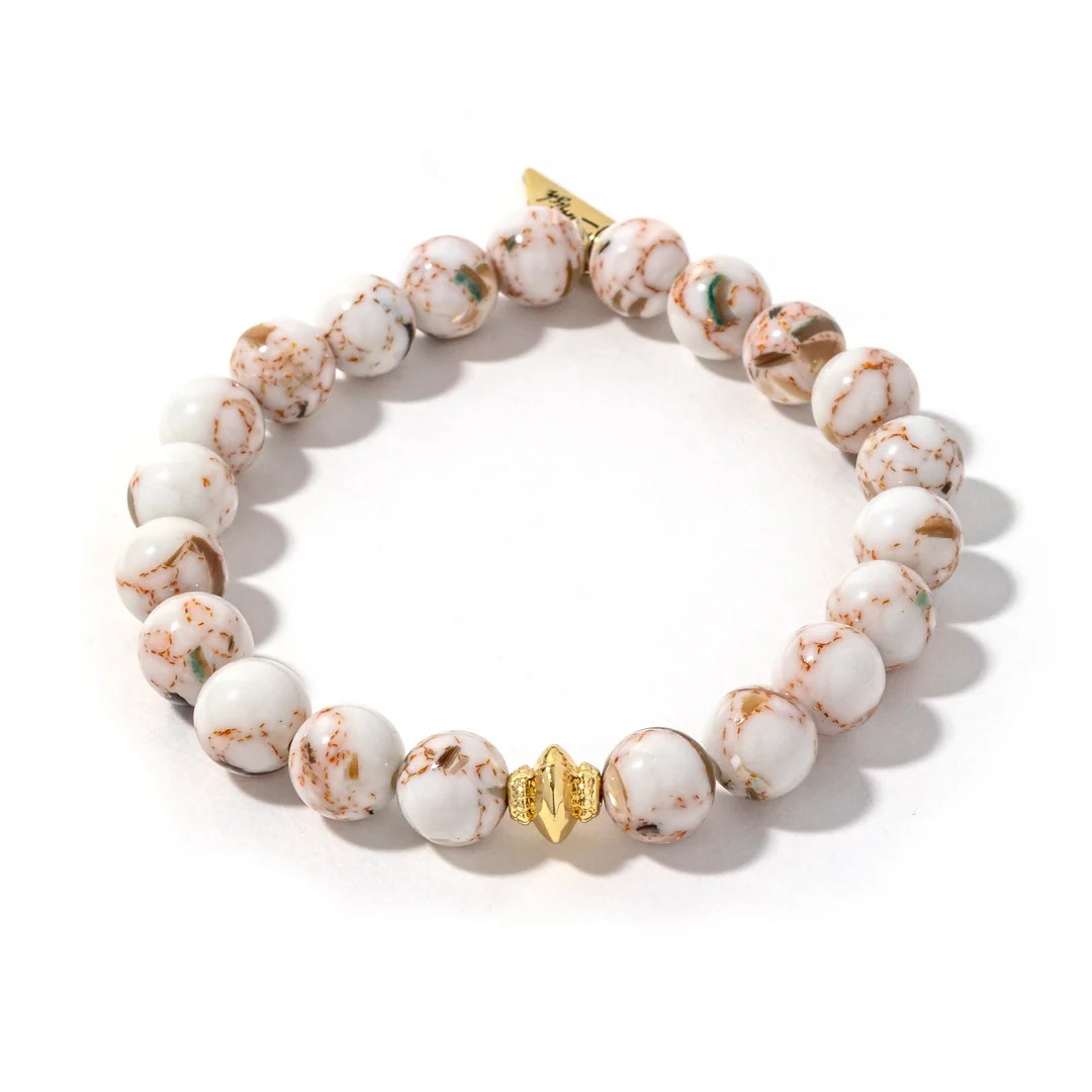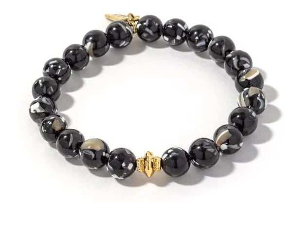Elevate your accessory collection with the Olive Bracelet, featuring a unique marbled design enhanced by elegant gold accents. This sophisticated piece effortlessly blends contemporary style with timeless charm, making it perfect for adding a refined touch to any outfit.