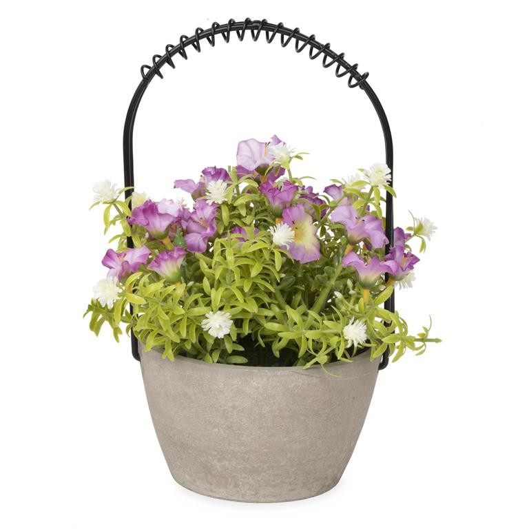 Bring a touch of elegance and sophistication to your home with this gorgeous flower arrangement. This beautiful arrangement features a mix of lush pink and white flowers, nestled in a gray pot with handle. The cute basket design adds a touch of garden charm, while the colorful hues of the flowers create a truly eye-catching display while lasting an eternity.