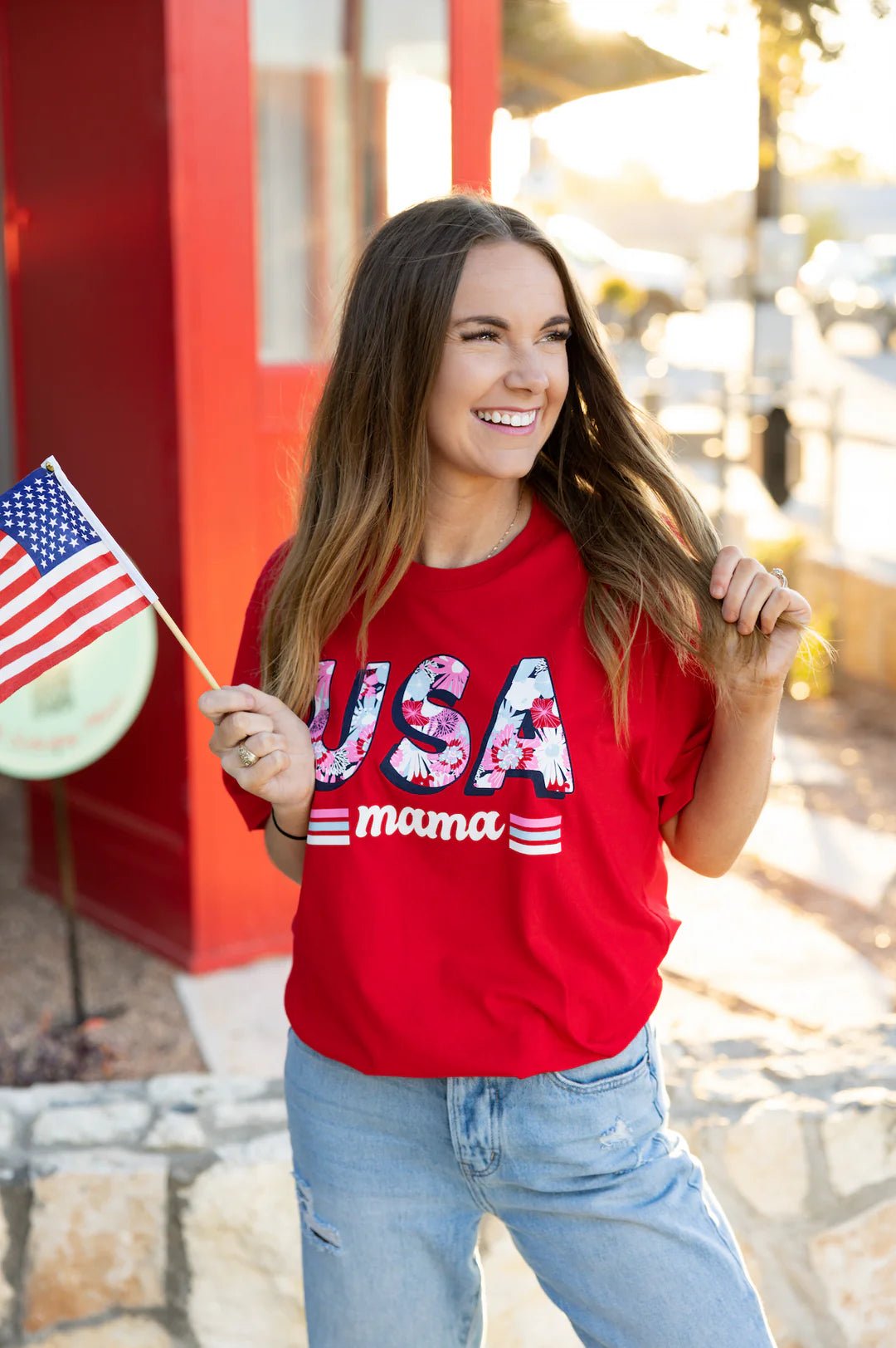 Show your love for the USA with our comfy USA Mama tee!! Whether you are celebrating the Fourth Of July or running errands, this is the perfect tee for all the moms!!