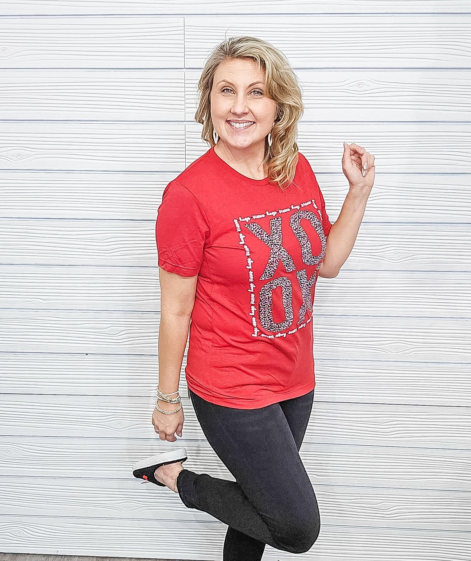 This might be our favorite Valentine's Day inspired tee we have done yet! A dotted print inside the X and O tops it off! The border of hugs and kisses melts our heart.