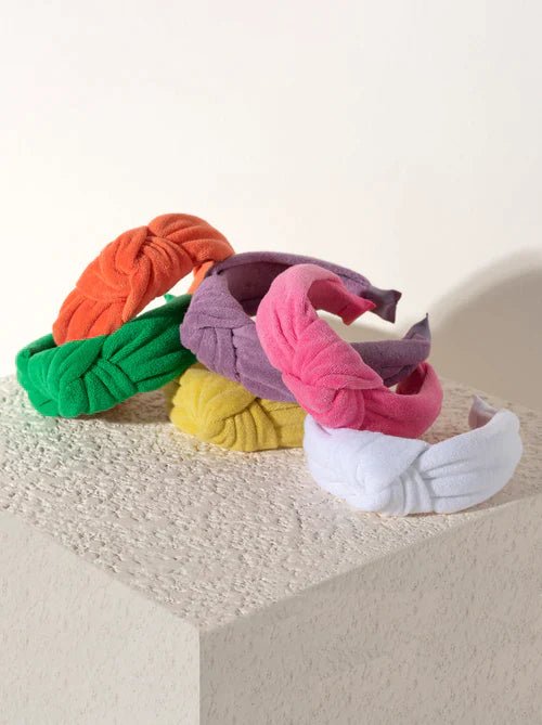 Elevate your look with our Knotted Terry Headband. These headband features a bold color in a terry fabric and adorned with a knotted top detail making it chic and stylish. Made from cotton, this headband will keep your hair at bay while amplifying your style!