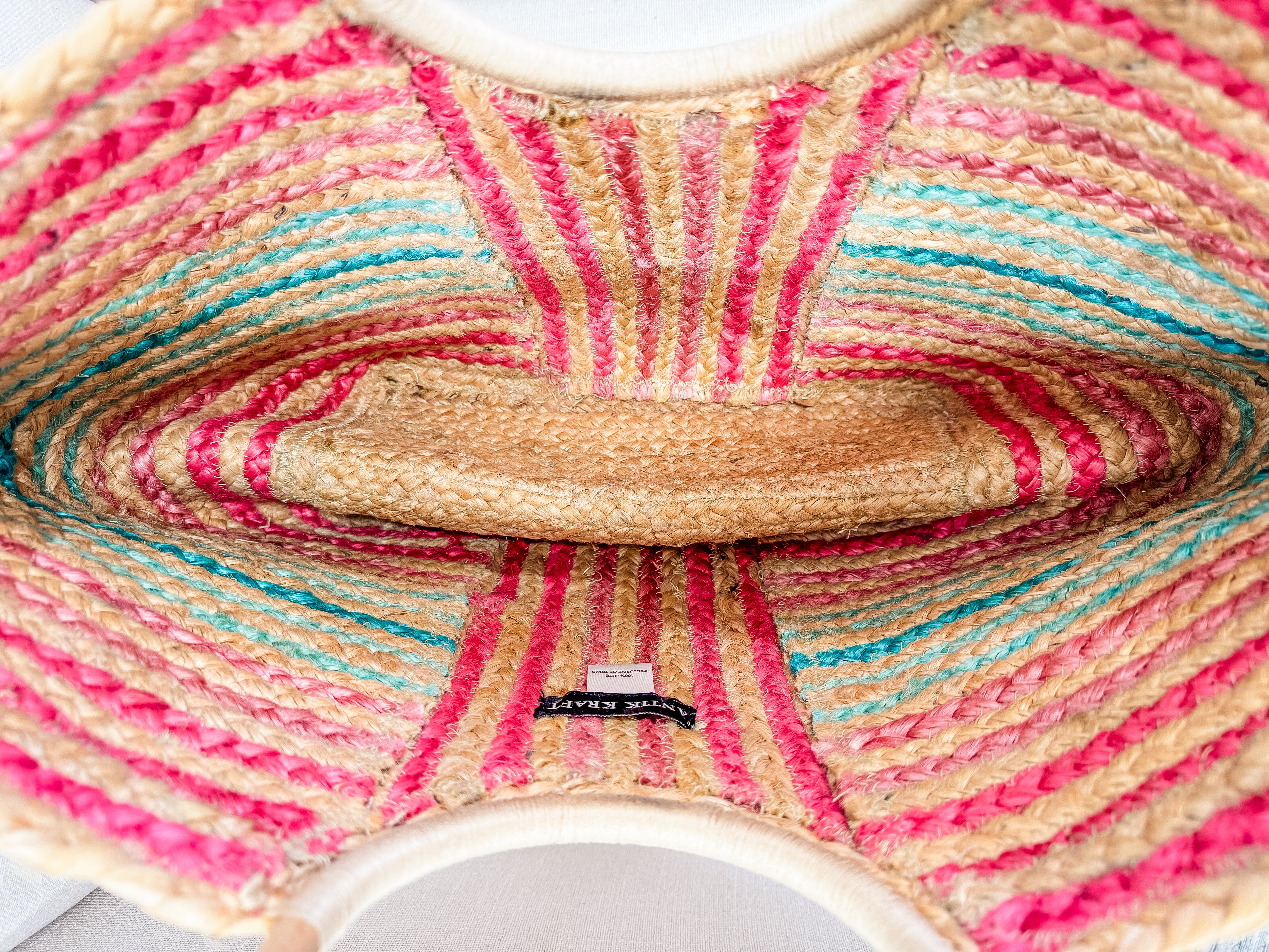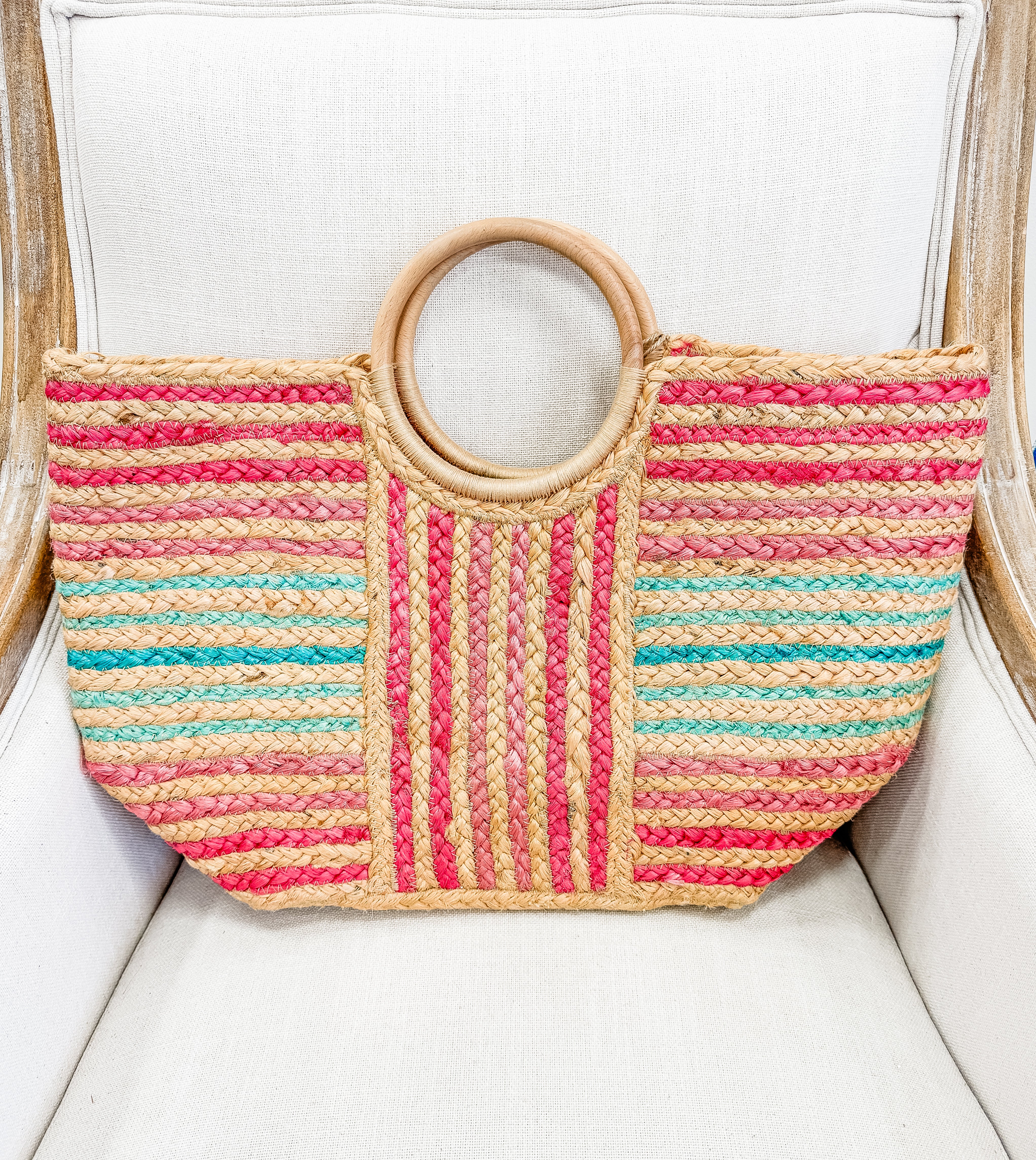 Carry your travel essentials in style with our Traveling Women Tote Bag. Made from dried grass material and featuring a unique weaved design, this bag is perfect for spring and summer adventures. The wooden handle adds a touch of nature to the fun colors. Pack with confidence and a bit of whimsy.