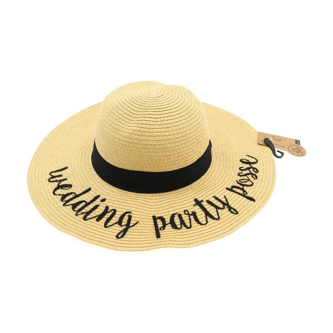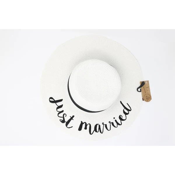 OPTIONS: "Just Married" (White w/ Black Band); "Wedding Party Posse" (Natural w/ Black Band)