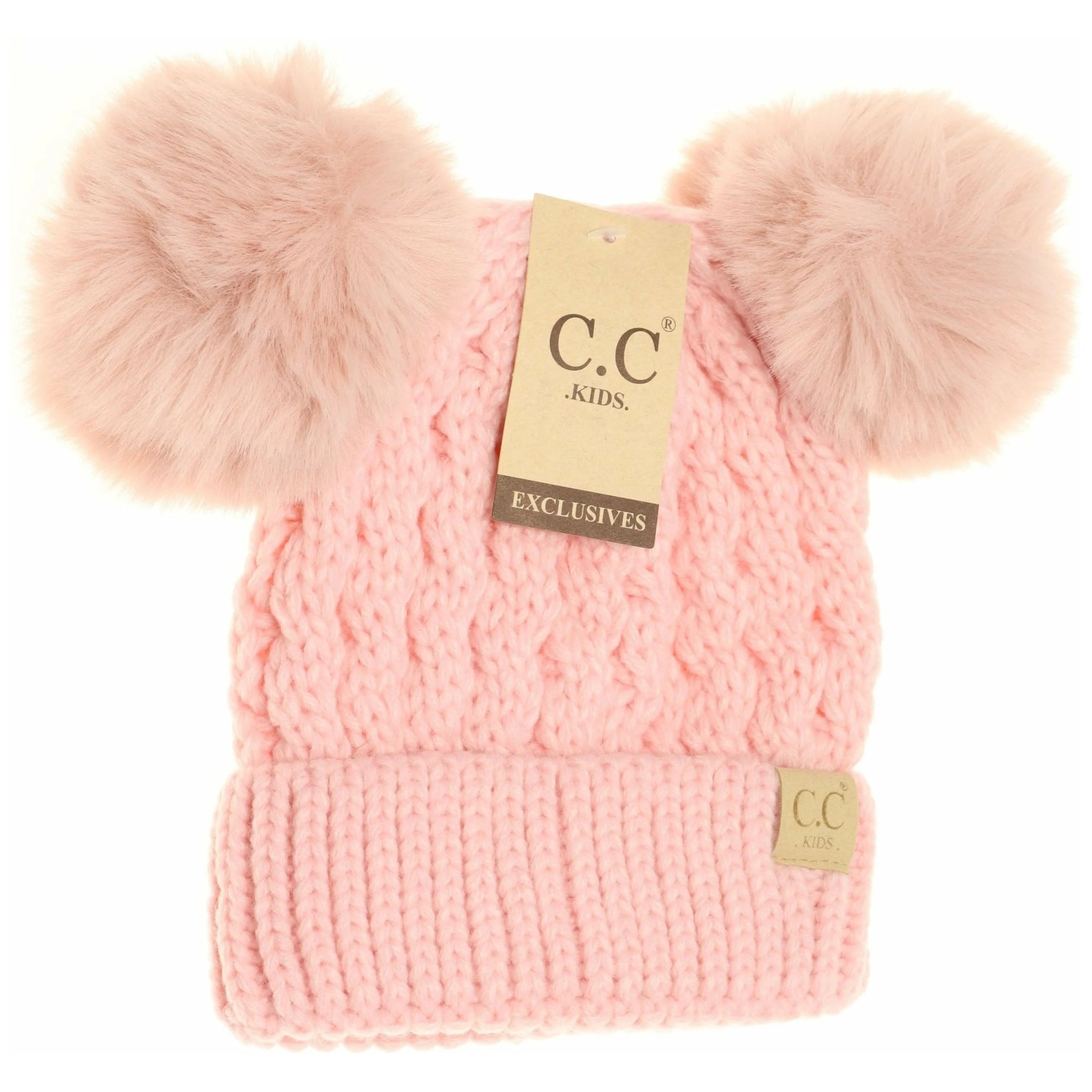 THIS is the beanie hat you have been waiting for with a twist! The matching double pom is the cutest beanie for you little one this winter!