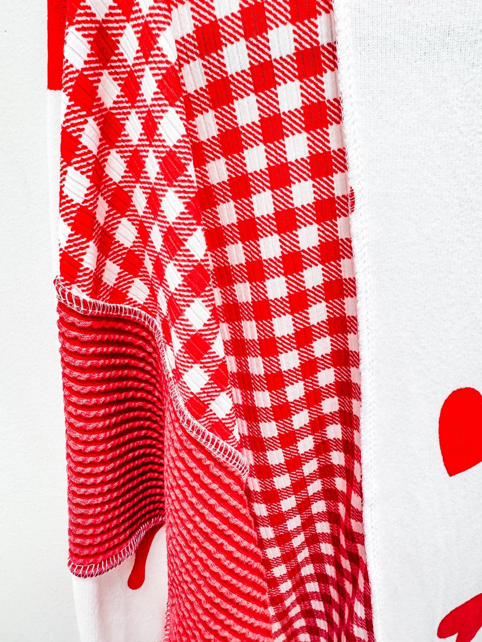 Spark joy with this playful heart print top that mixes cozy plaid with ribbed textures for visual interest. The oversized, loose fit and long sleeves create an effortlessly cool vibe perfect for layering or wearing solo. A fun statement piece that brings personality to your everyday wardrobe!