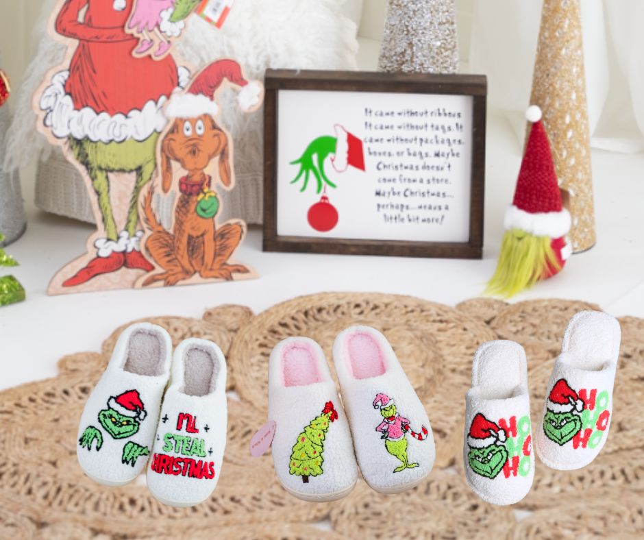 These, "I'll Steal Christmas" Grinch Embroidered Slippers are festive and are fleece-lined. They feature a playful holiday embroidery and soft cushioned insoles.