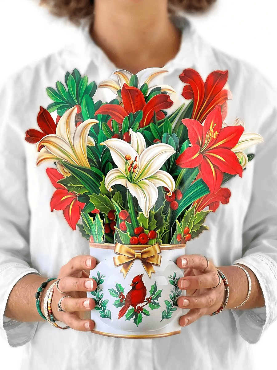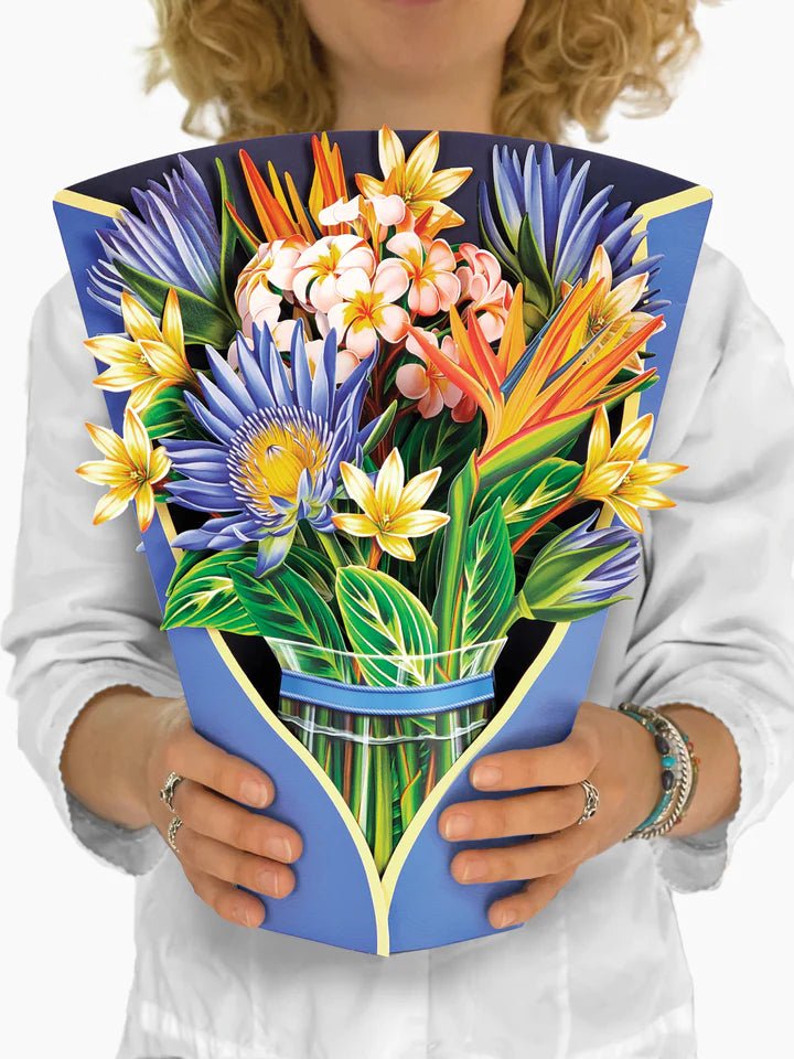 A pop-up bouquet of Fresh Cut Paper Flowers is a delightful greeting card celebration of uplifting emotions and support. The bright blossoms of this arrangement will outlast normal cut flowers and continue to thrive without any need for water or preservatives.