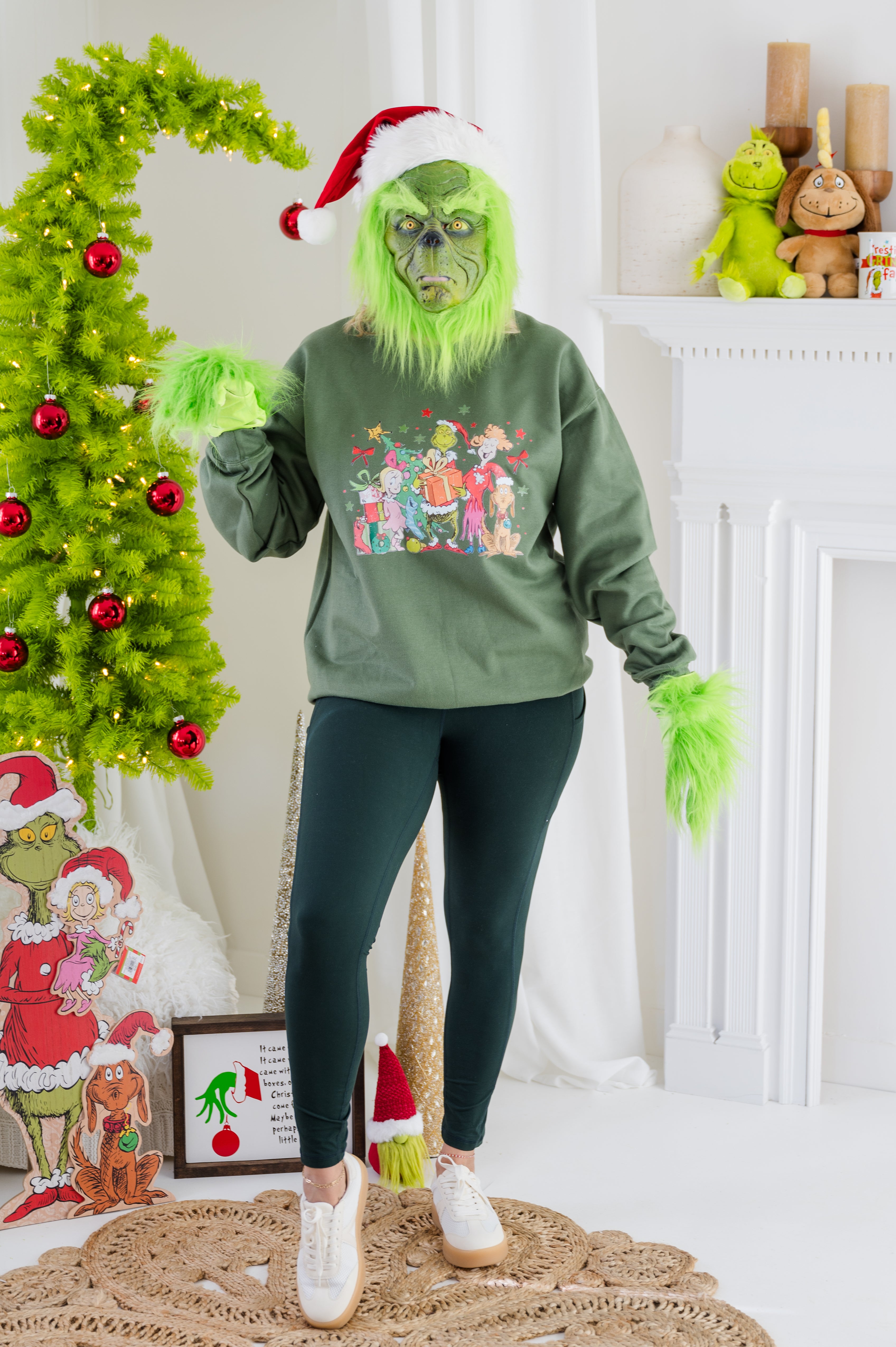 The bright holiday colors and cheerful design make it a standout for every Christmas gathering, movie night, or gift exchange. Soft, comfy, and full of character, this sweatshirt is your go-to for spreading laughs and a little Grinchy charm all season long. 🎄✨