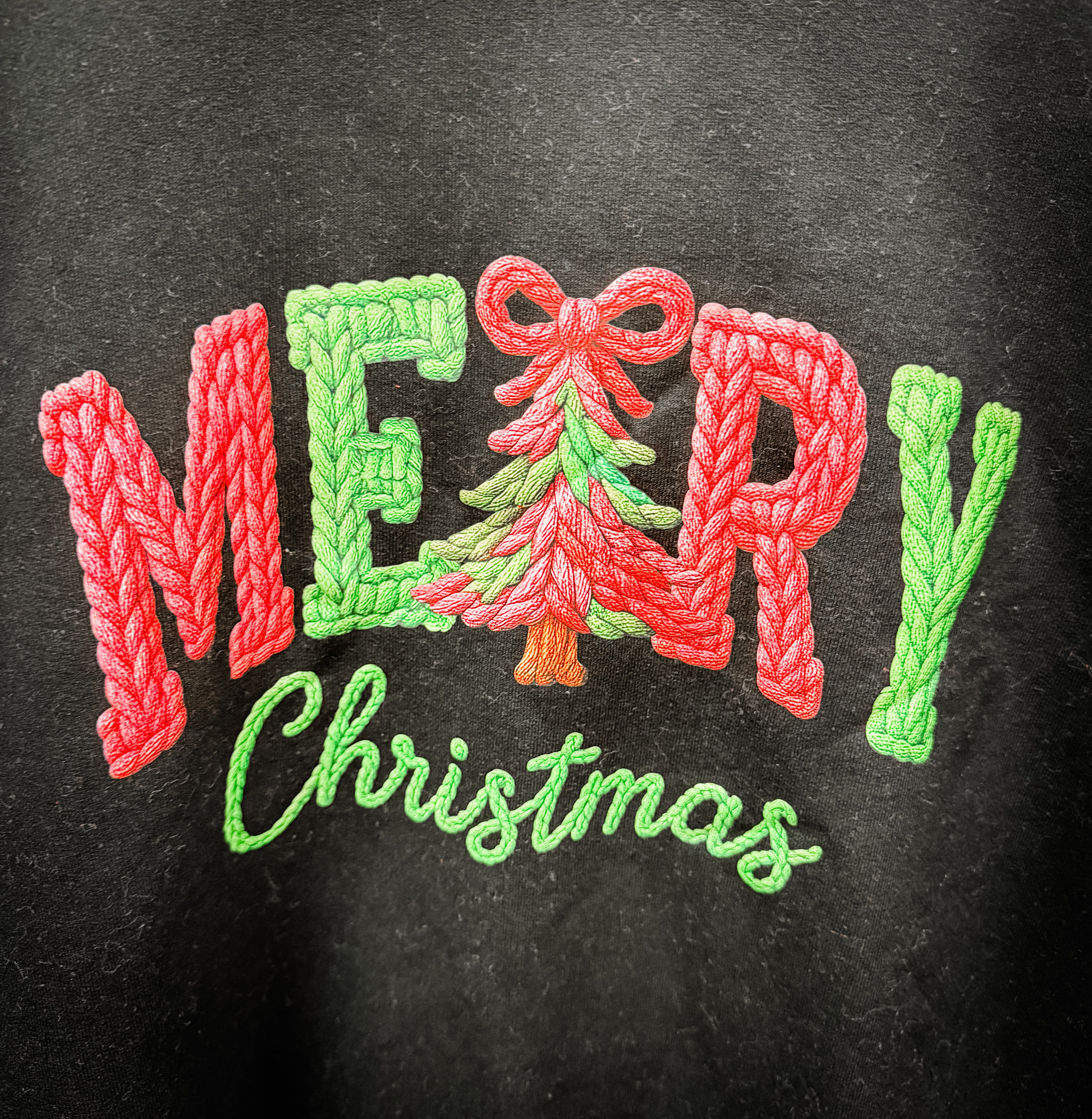 Spread holiday cheer in this delightfully cozy sweatshirt featuring "Merry Christmas" in eye-catching roped lettering bursting with festive colors. Crafted from soft, warm fabric that feels as good as it looks, it's the perfect layering piece for seasonal celebrations, casual gatherings, or simply embracing the festive spirit all season long. Comfort meets holiday style in one cheerful design.