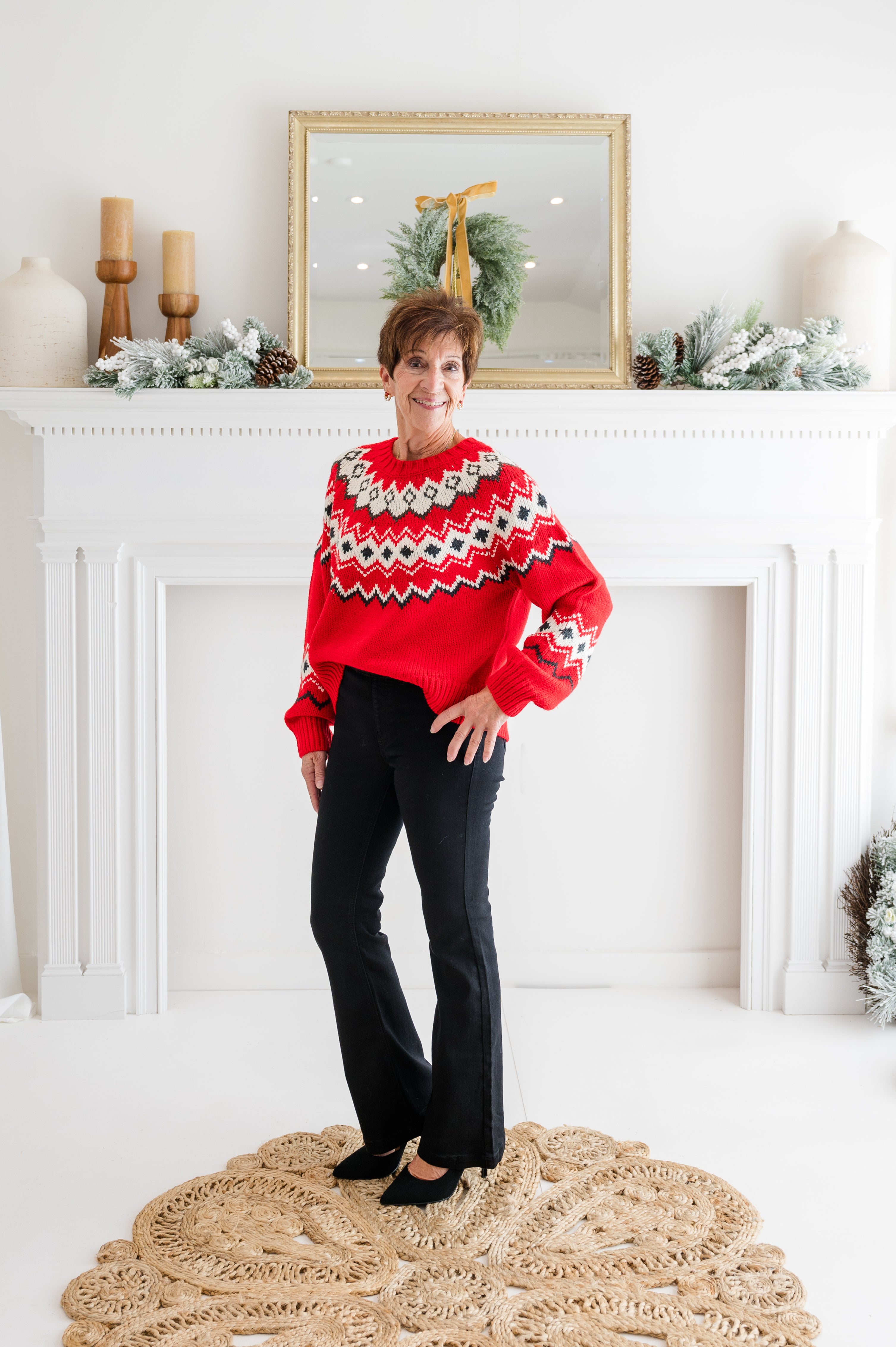 From fireside lounging to festive outings, this Fair Isle sweater brings warmth with style.