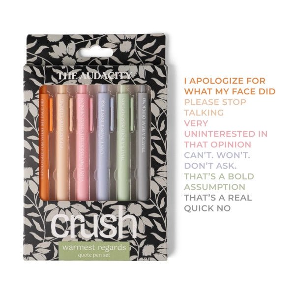 These gift-ready sets come in three themes with funny, relatable quotes on each pen.