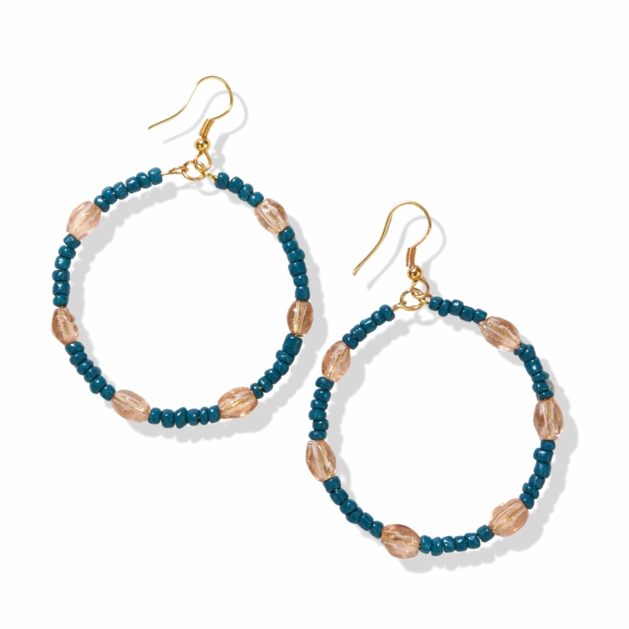 A front-facing hoop is always a good idea. Join in the fun of our Gen-Z-inspired Kaleidoscope collection and let the joy of color take you back to simpler times. Our peacock + blush mixed beads create a unique pattern that's both modern + playful. Life is short - accessorize accordingly.