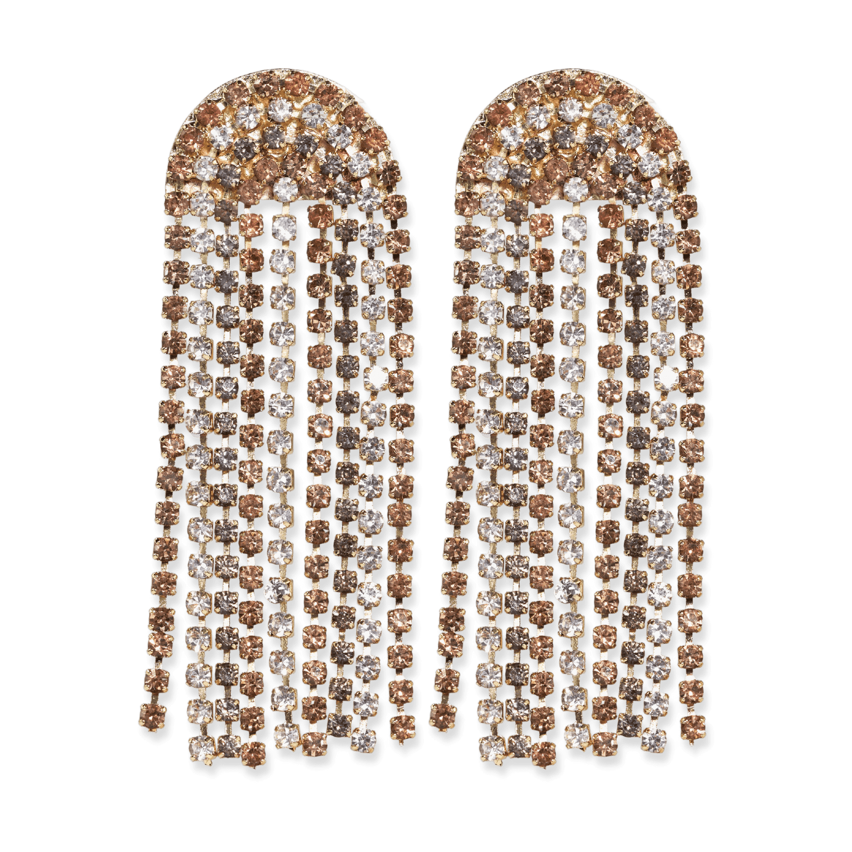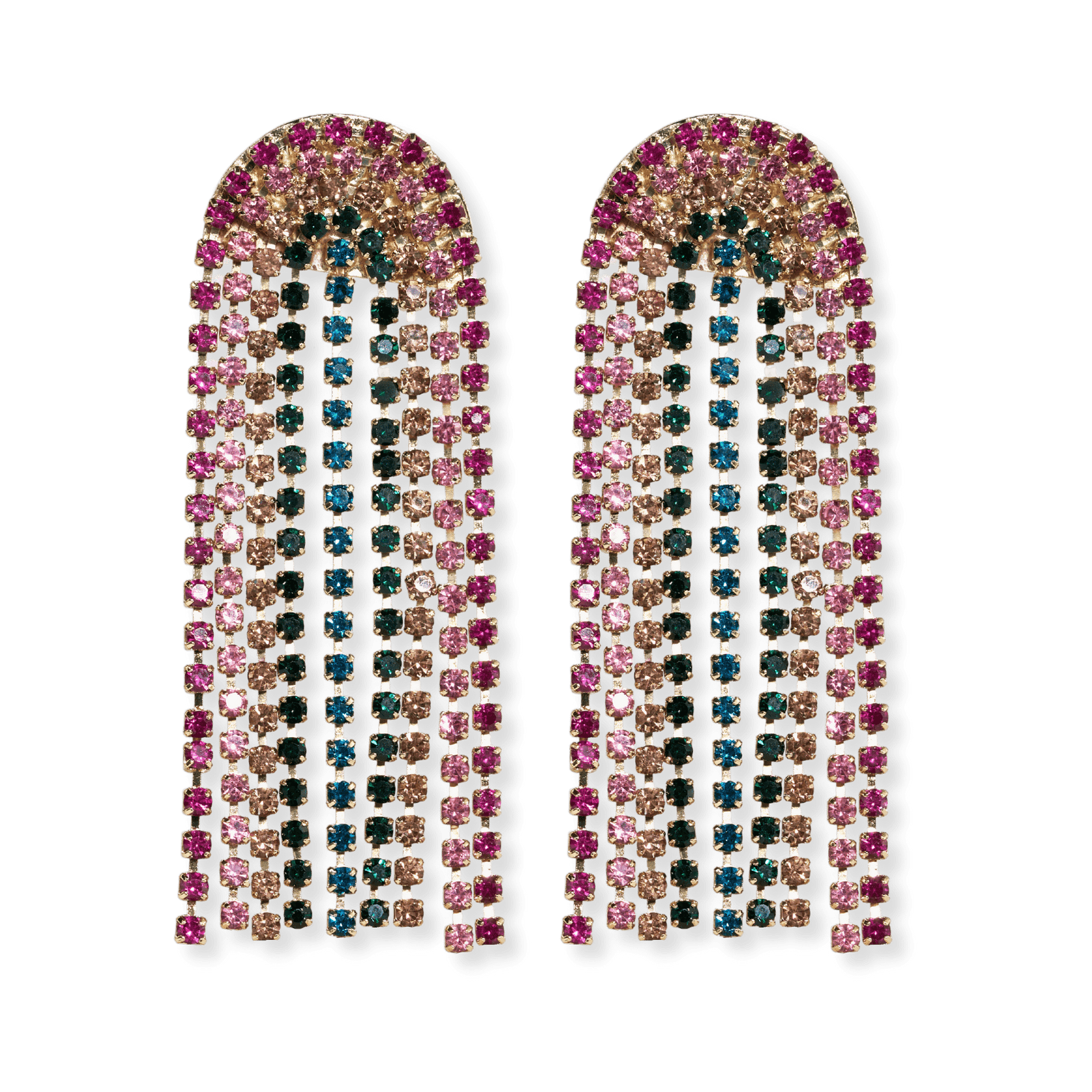 Unleash your vibrant personality with the Prism Clara Earrings in a mesmerizing rainbow design. These statement earrings feature a stunning cascade of rainbow-shaped dangly fringe, offering a smaller size of our classic prism stone shape. Let the vibrant hues of the rainbow reflect your joyful spirit and create a captivating visual display as you move. Whether you're attending a special event or adding a pop of color to your everyday look, these earrings are sure to make a statement and inspire confidence.